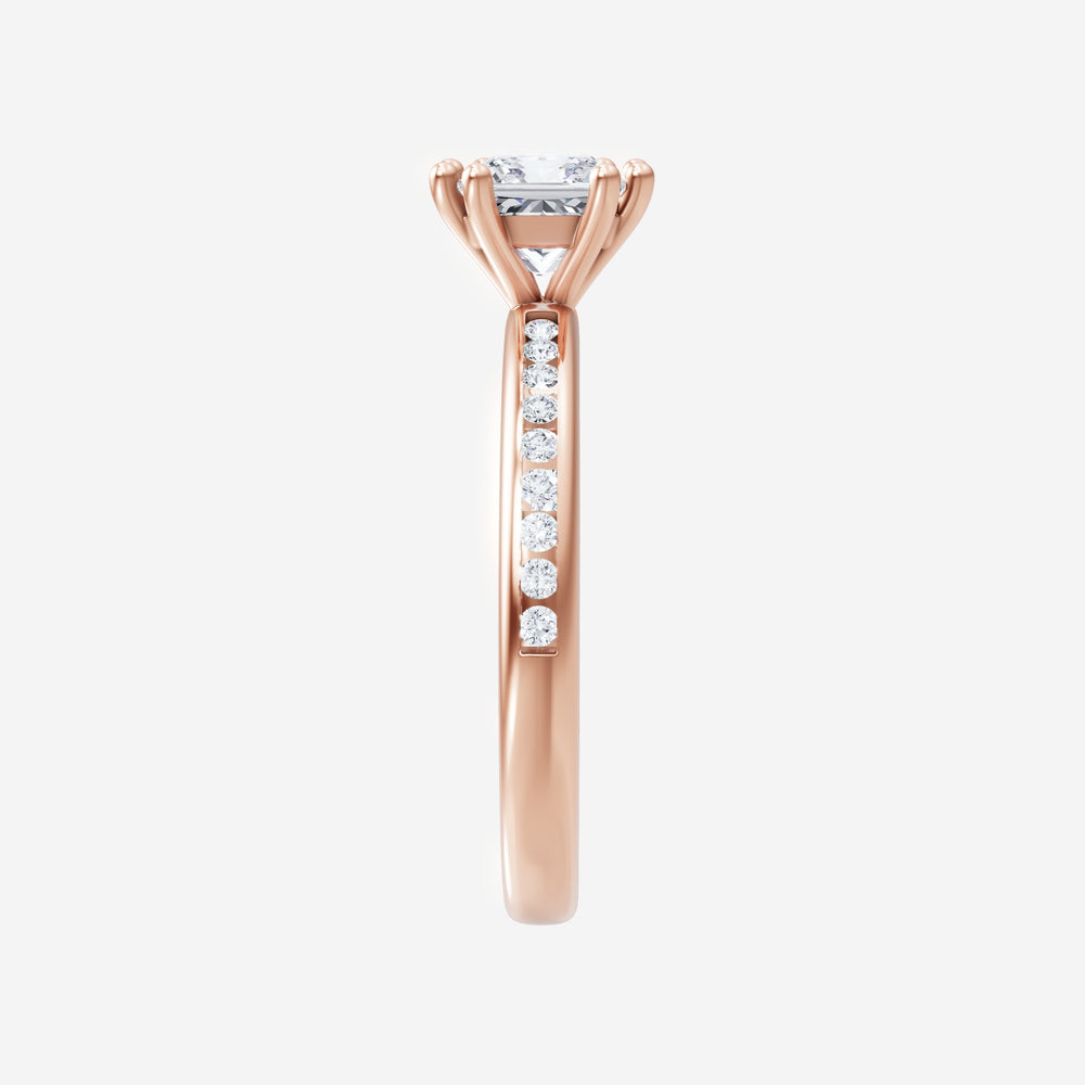 You’ve designed a ring that reflects lasting elegance and grace! Crafted from 18K Rose Gold, this exquisite Princess lab-grown diamond is the centerpiece of this unique design. This Channel Set Shank with a 4 Prong Split Prong head showcases the brilliance of the Princess diamond, creating a timeless look. A perfect choice to celebrate love, commitment, and everything in between.