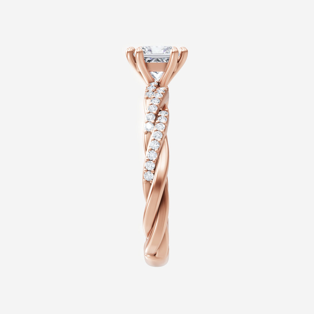 You’ve designed a ring that reflects lasting elegance and grace! Crafted from 18K Rose Gold, this exquisite Princess lab-grown diamond is the centerpiece of this unique design. This Rope Diamond Shank with a 4 Prong Split Prong head showcases the brilliance of the Princess diamond, creating a timeless look. A perfect choice to celebrate love, commitment, and everything in between.