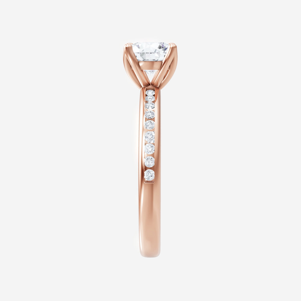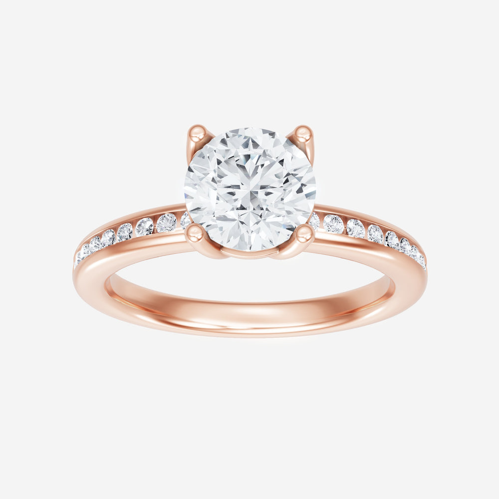 You’ve designed a ring that reflects lasting elegance and grace! Crafted from 18K Rose Gold, this exquisite Round lab-grown diamond is the centerpiece of this unique design. This Channel Set Shank with a 4 Prong Flower Head head showcases the brilliance of the Round diamond, creating a timeless look. Ideal for those who seek both beauty and meaning, this ring will stand as a testament to cherished memories.