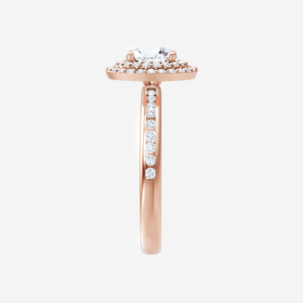 You’ve designed a ring that reflects lasting elegance and grace! Crafted from 18K Rose Gold, this exquisite Round lab-grown diamond is the centerpiece of this unique design. This Channel Set Shank with a Double Halo head showcases the brilliance of the Round diamond, creating a timeless look. It's a piece of elegance and beauty, perfect for marking life's most beautiful occasions.