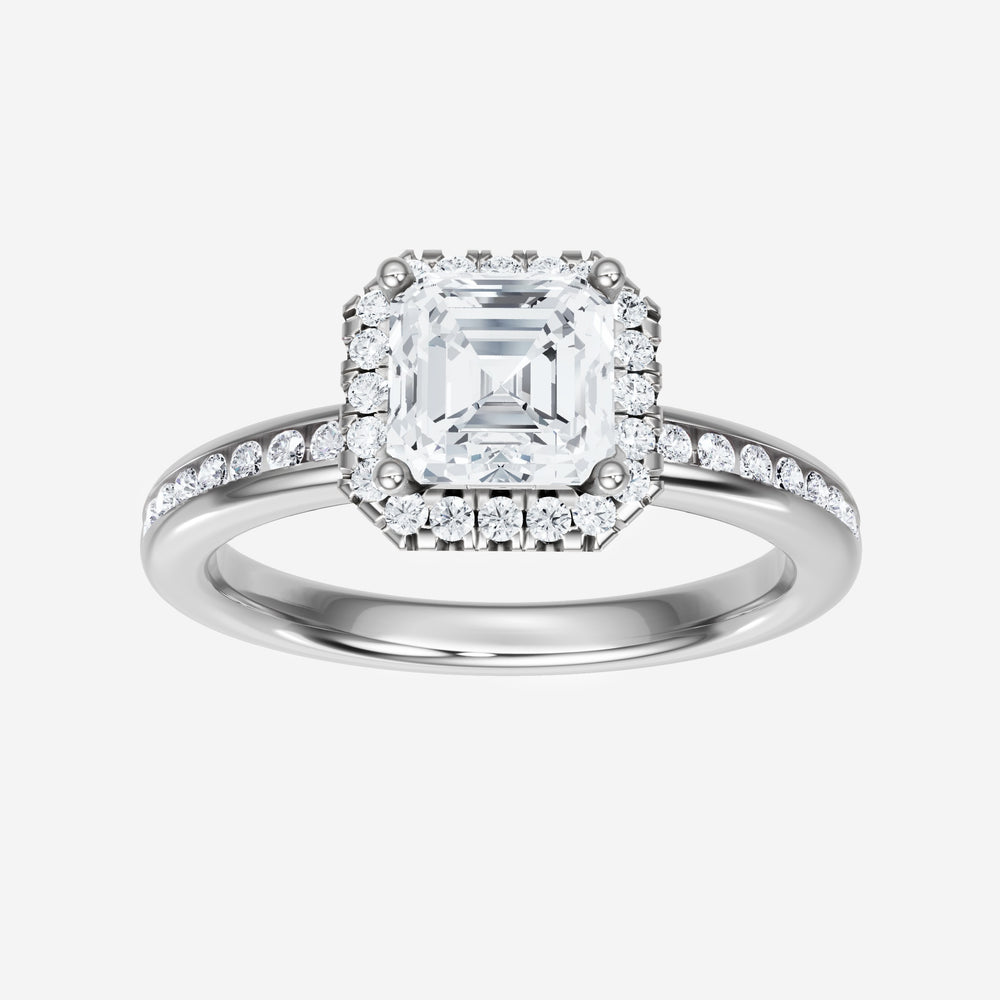 You’ve designed a ring that reflects lasting elegance and grace! Crafted from 18K White Gold, this exquisite Asscher lab-grown diamond is the centerpiece of this unique design. This Channel Set Shank with a Micro Halo head showcases the brilliance of the Asscher diamond, creating a timeless look. This ring will become a cherished reminder of life's most treasured moments.