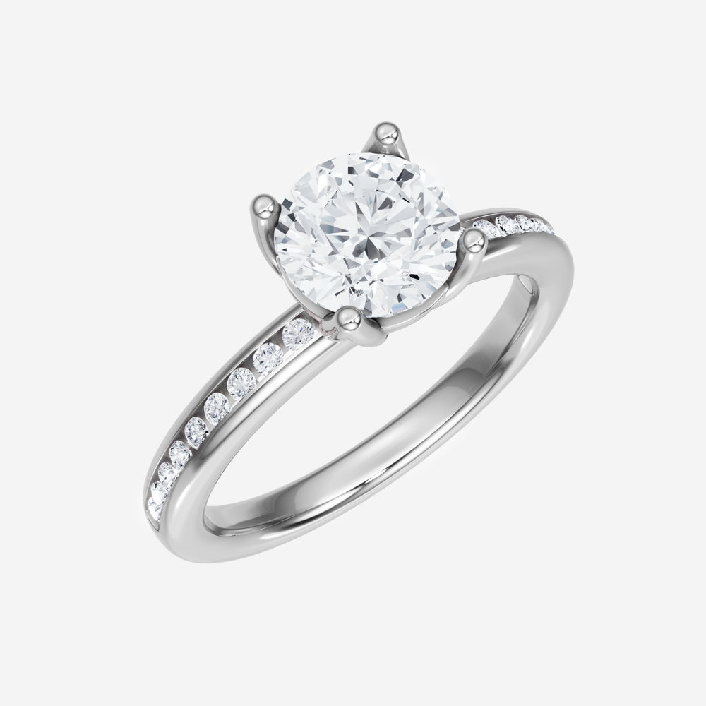You’ve designed a ring that reflects lasting elegance and grace! Crafted from 18K White Gold, this exquisite Round lab-grown diamond is the centerpiece of this unique design. This Channel Set Shank with a 4 Prong Flower Head head showcases the brilliance of the Round diamond, creating a timeless look. A perfect choice to celebrate love, commitment, and everything in between.