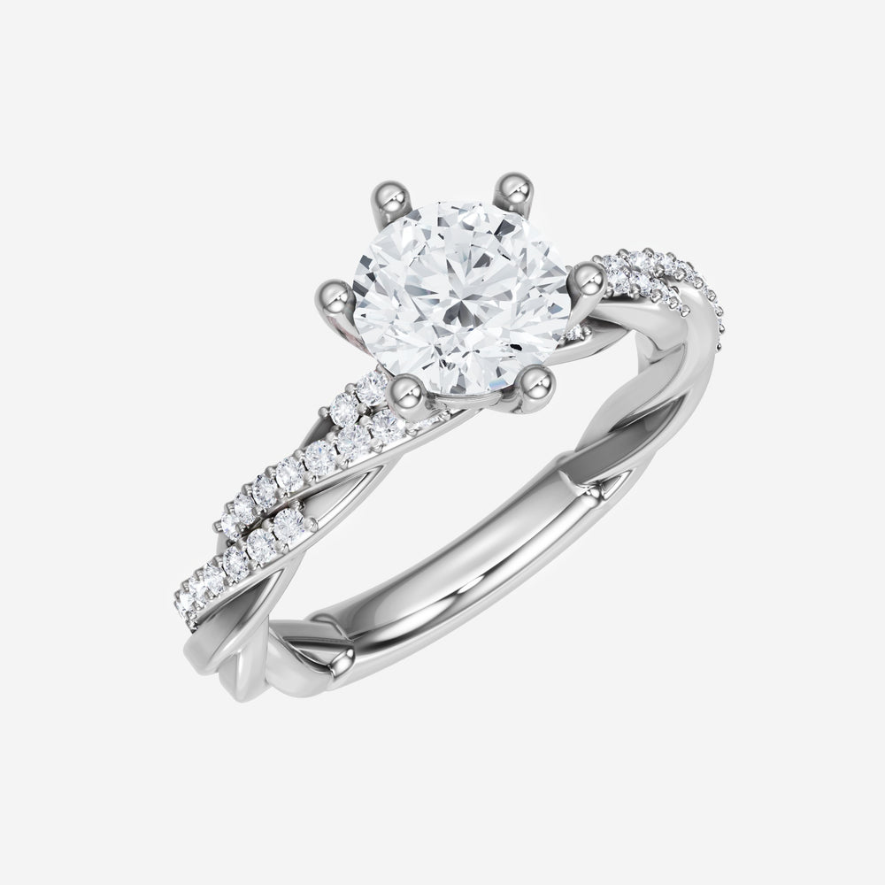 You’ve designed a ring that reflects lasting elegance and grace! Crafted from 18K White Gold, this exquisite Round lab-grown diamond is the centerpiece of this unique design. This Rope Diamond Shank with a 6 Prong Head head showcases the brilliance of the Round diamond, creating a timeless look. This elegant piece is the perfect symbol of love, strength, and timeless beauty.