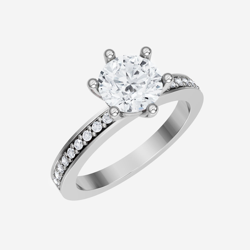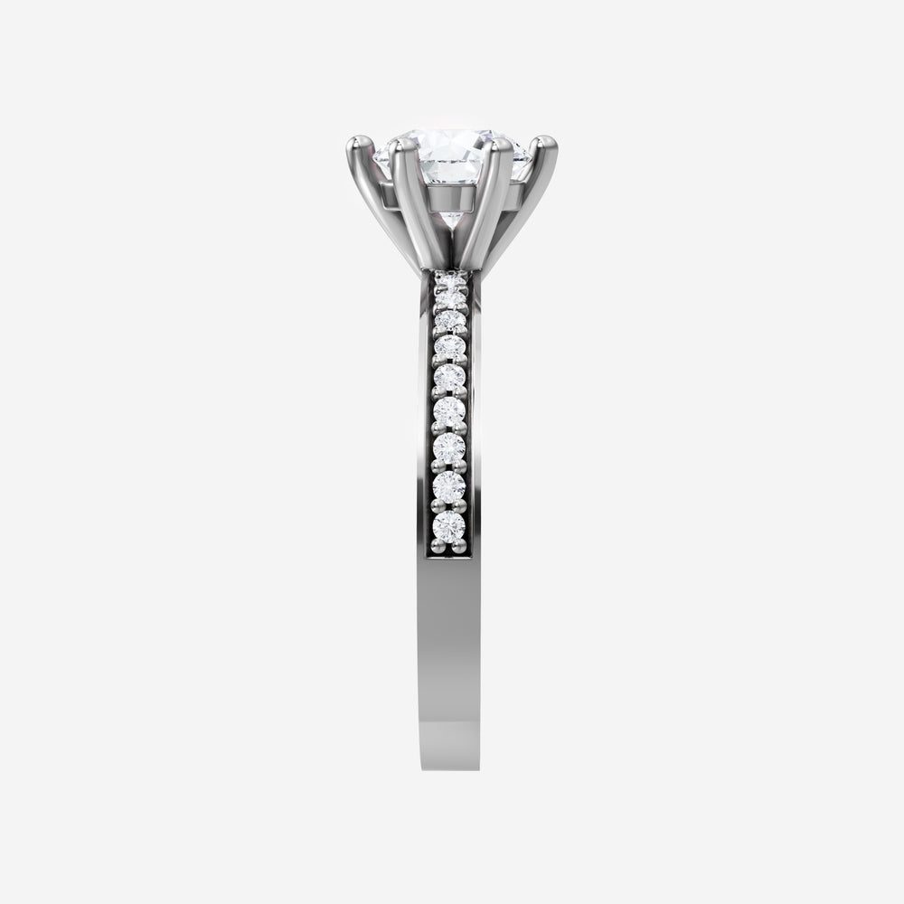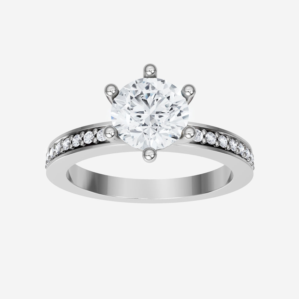 You’ve designed a ring that reflects lasting elegance and grace! Crafted from 18K White Gold, this exquisite Round lab-grown diamond is the centerpiece of this unique design. This Single Pave Shank with a 6 Prong Head head showcases the brilliance of the Round diamond, creating a timeless look. This elegant piece is the perfect symbol of love, strength, and timeless beauty.