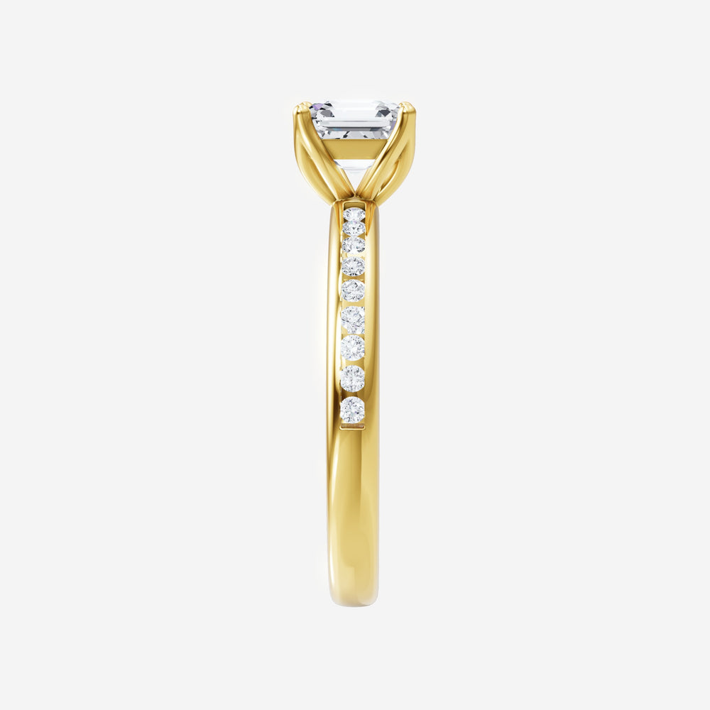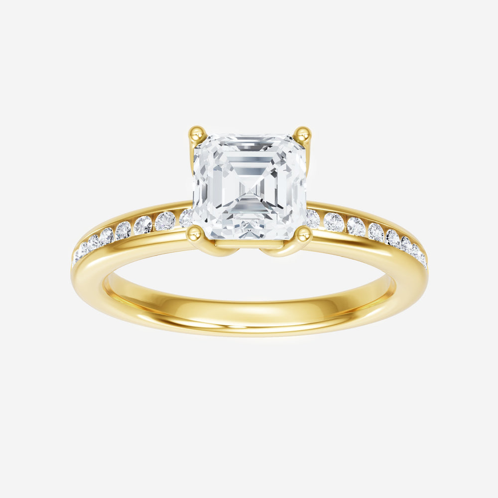 You’ve designed a ring that reflects lasting elegance and grace! Crafted from 18K Yellow Gold, this exquisite Asscher lab-grown diamond is the centerpiece of this unique design. This Channel Set Shank with a 4 Prong Flower Head head showcases the brilliance of the Asscher diamond, creating a timeless look. Whether as a gift or a personal treasure, this ring will forever symbolize the most meaningful moments in life.