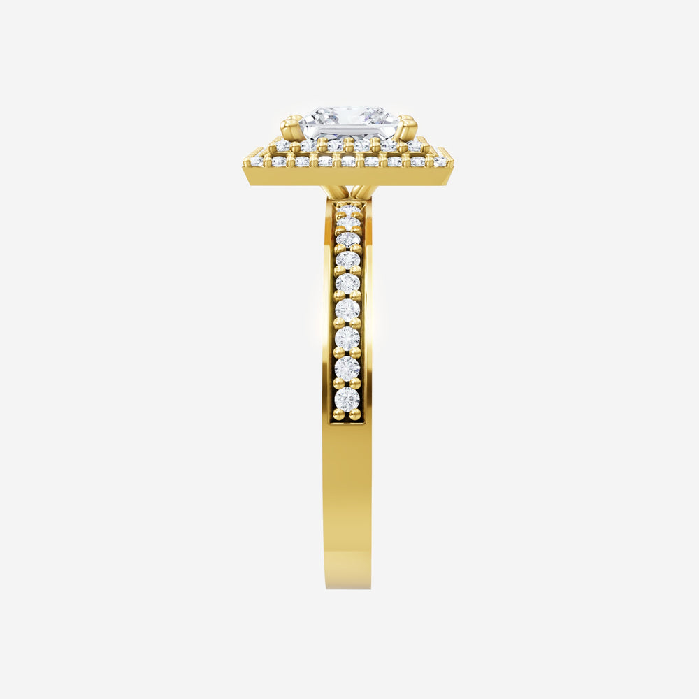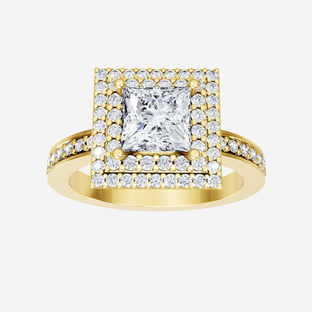 You’ve designed a ring that reflects lasting elegance and grace! Crafted from 18K Yellow Gold, this exquisite Princess lab-grown diamond is the centerpiece of this unique design. This Single Pave Shank with a Double Halo head showcases the brilliance of the Princess diamond, creating a timeless look. With this ring, celebrate every moment of joy, success, and love.