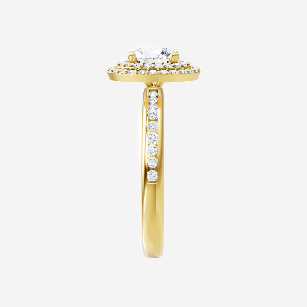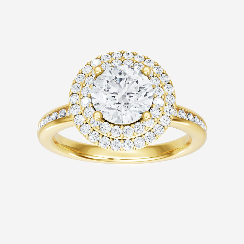 You’ve designed a ring that reflects lasting elegance and grace! Crafted from 18K Yellow Gold, this exquisite Round lab-grown diamond is the centerpiece of this unique design. This Channel Set Shank with a Double Halo head showcases the brilliance of the Round diamond, creating a timeless look. This stunning ring makes the perfect symbol of everlasting love and devotion.