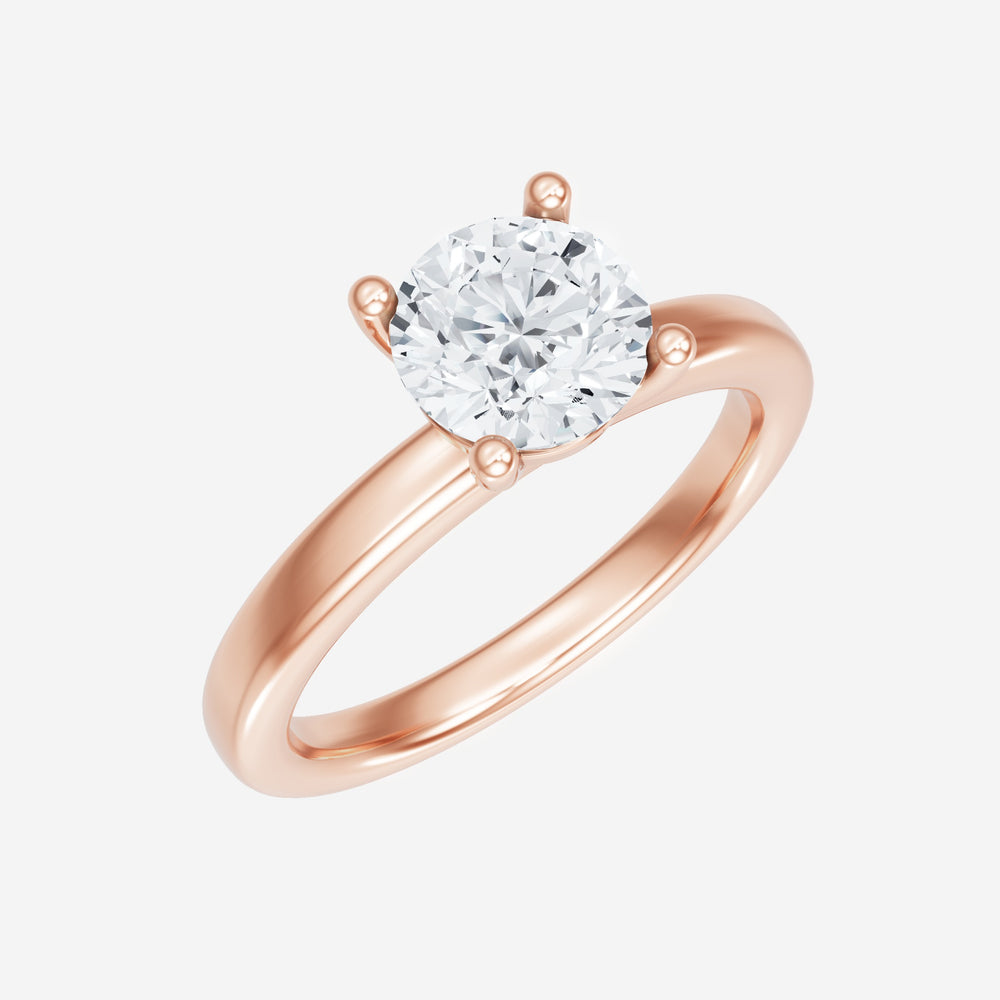 You’ve designed a ring that reflects lasting elegance and grace! Crafted from 18K Rose Gold, this exquisite Round lab-grown diamond is the centerpiece of this unique design. This Basic Plain Shank with a 4 Prong Head head showcases the brilliance of the Round diamond, creating a timeless look. It's a piece of elegance and beauty, perfect for marking life's most beautiful occasions.