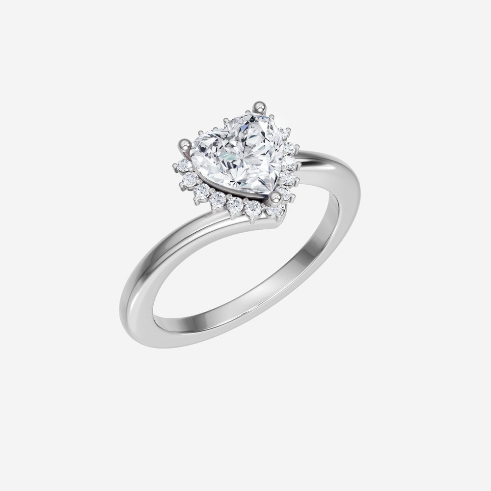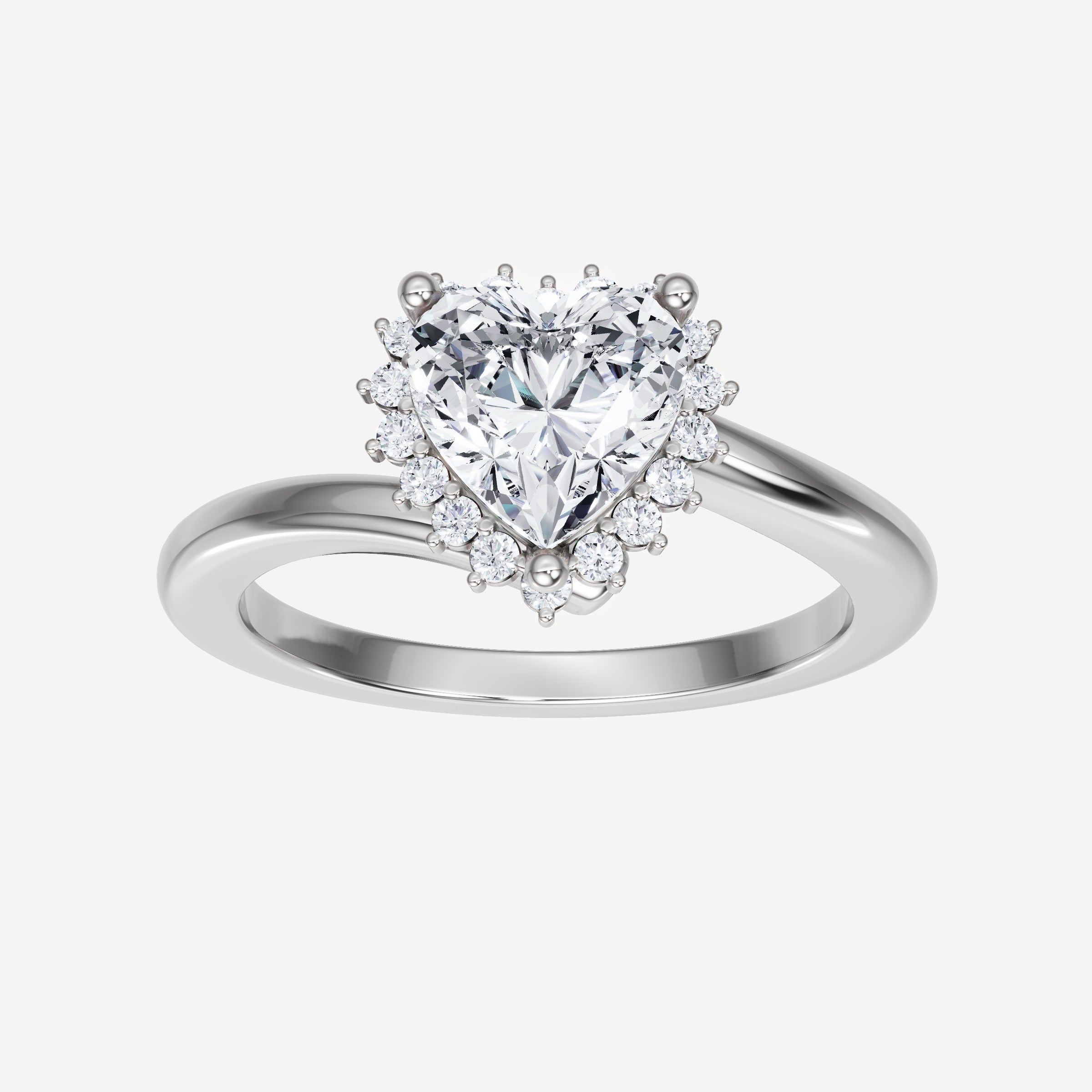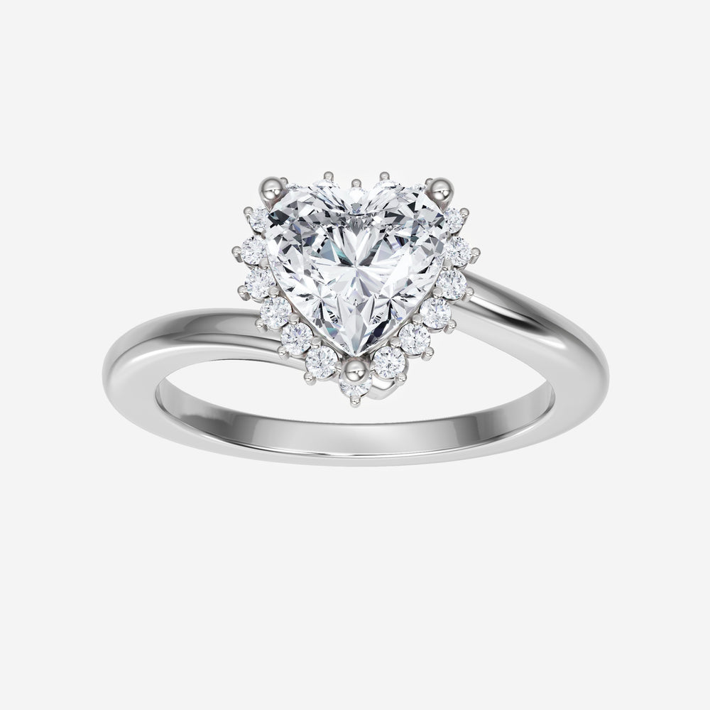 You’ve designed a ring that reflects lasting elegance and grace! Crafted from 18K White Gold, this exquisite Heart lab-grown diamond is the centerpiece of this unique design. This Bypass Shank with a 3 Prong Diana Halo head showcases the brilliance of the Heart diamond, creating a timeless look. This stunning ring makes the perfect symbol of everlasting love and devotion.