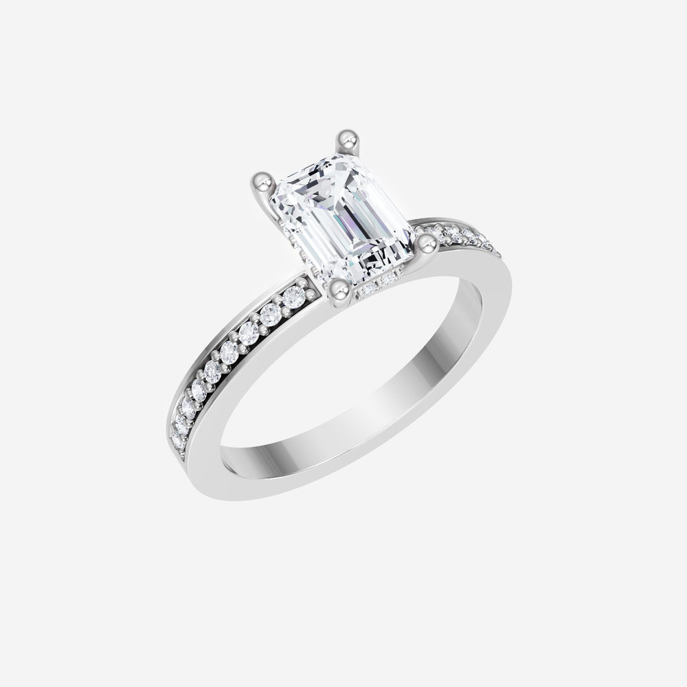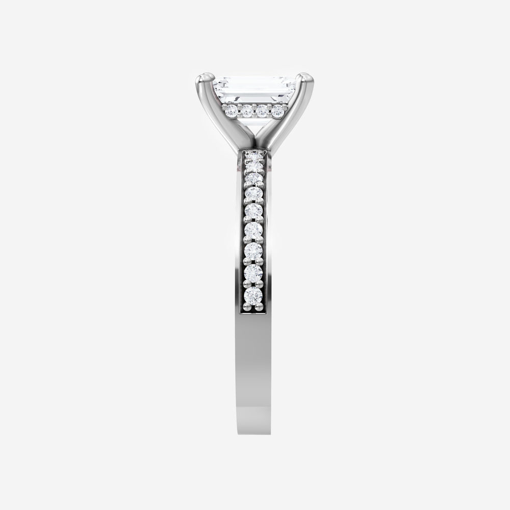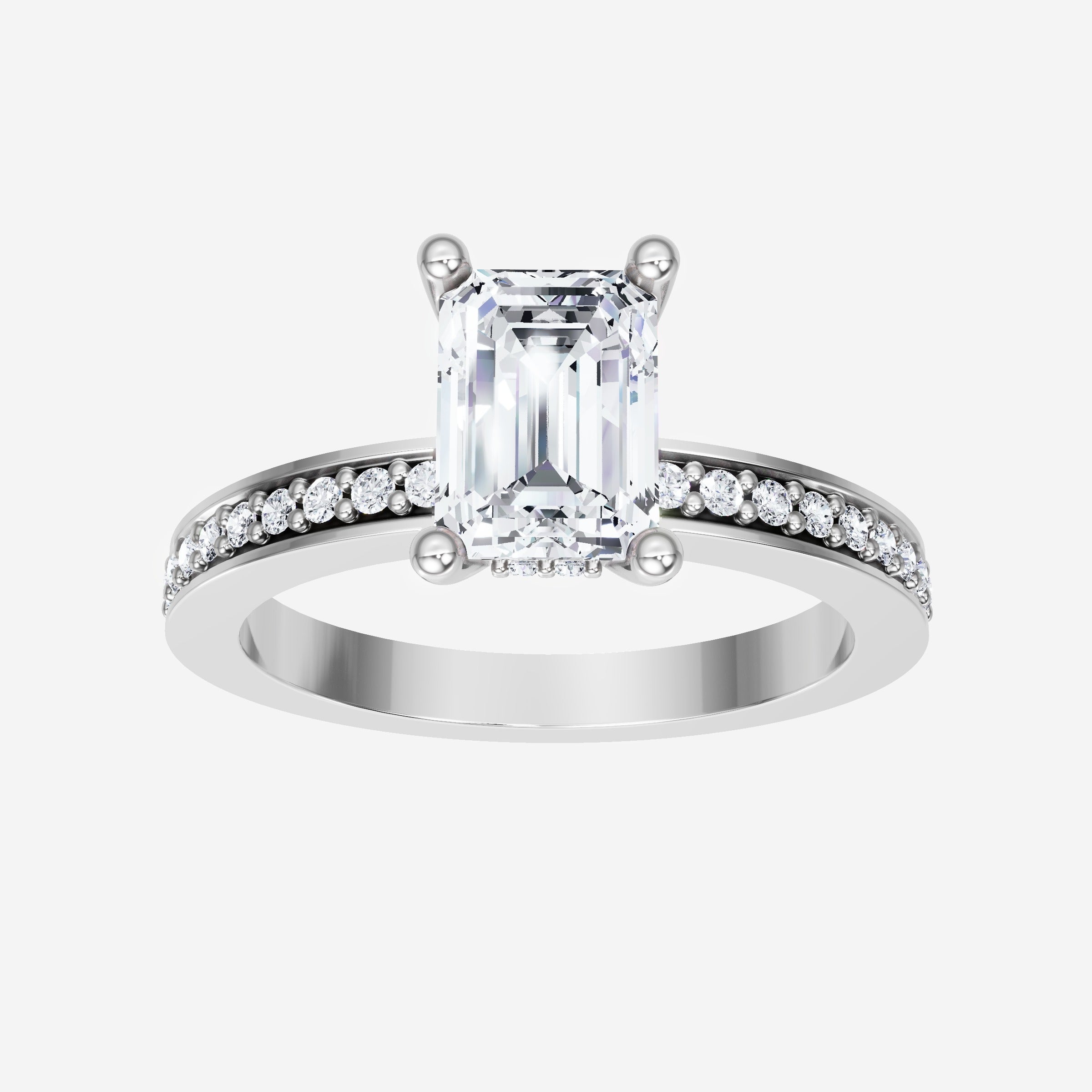 You’ve designed a ring that reflects lasting elegance and grace! Crafted from 14K White Gold, this exquisite Emerald lab-grown diamond is the centerpiece of this unique design. This Single Pave Shank with a Hidden Halo head showcases the brilliance of the Emerald diamond, creating a timeless look. A perfect choice to celebrate love, commitment, and everything in between.