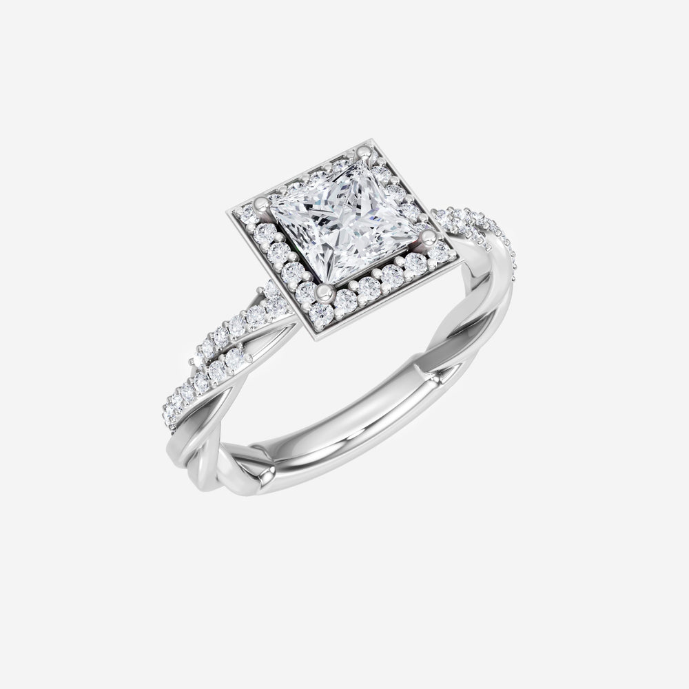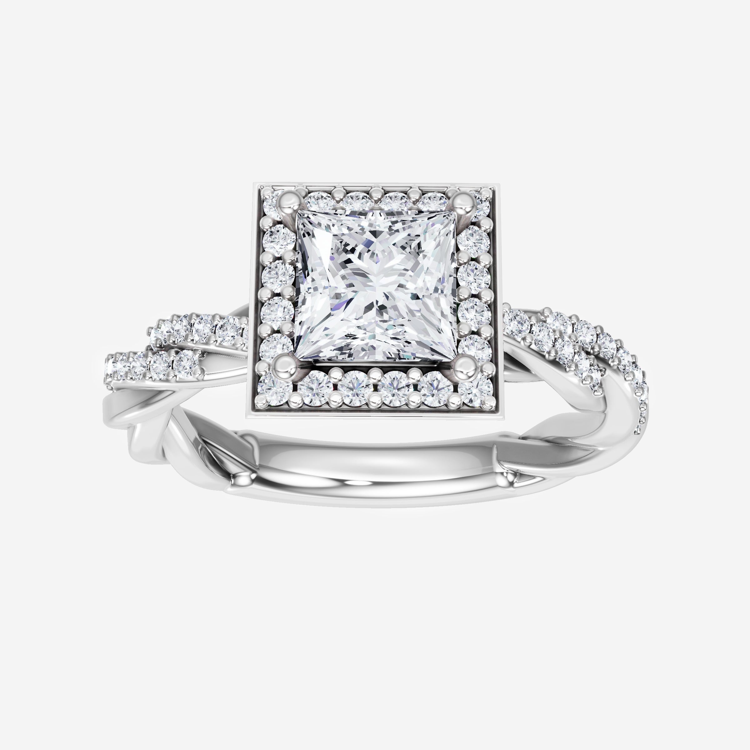 You’ve designed a ring that reflects lasting elegance and grace! Crafted from 14K White Gold, this exquisite Princess lab-grown diamond is the centerpiece of this unique design. This Rope Diamond Shank with a Pave Halo head showcases the brilliance of the Princess diamond, creating a timeless look. This ring will become a cherished reminder of life's most treasured moments.