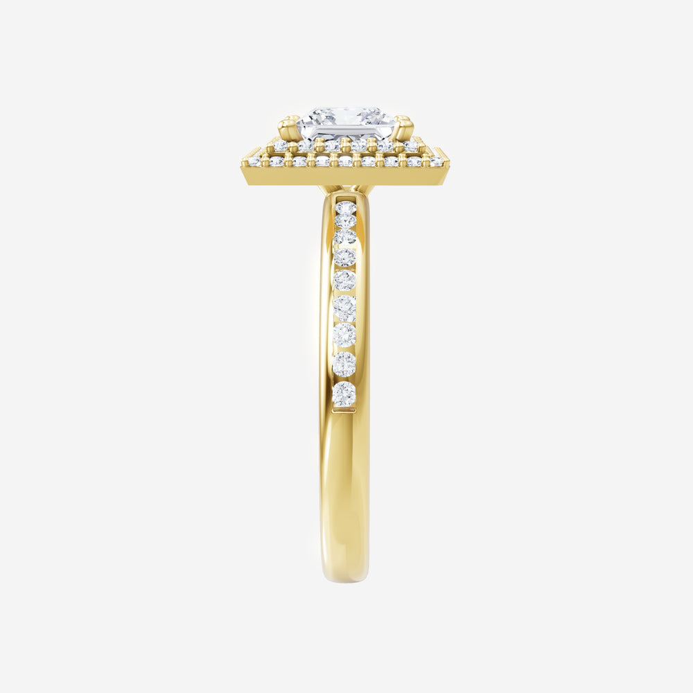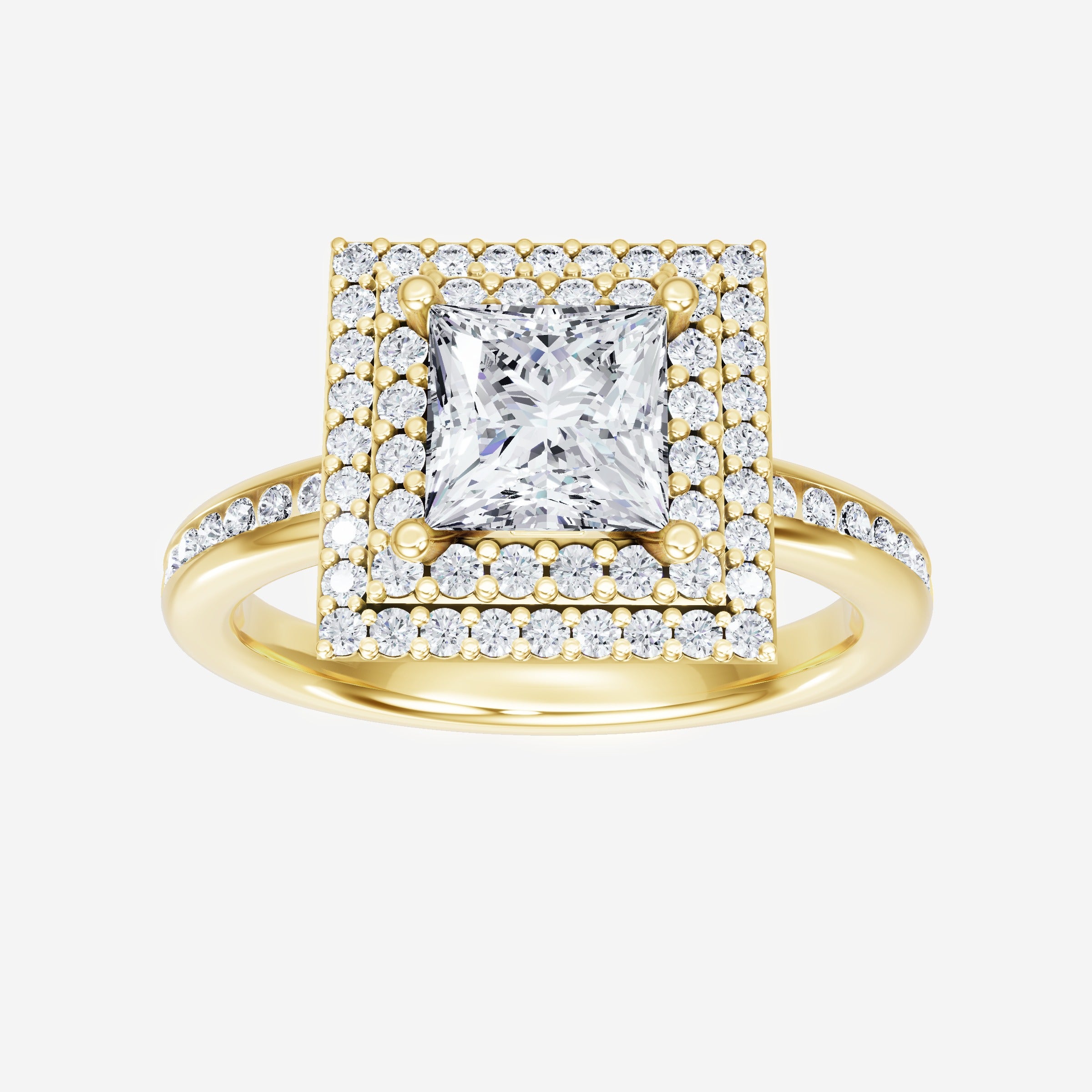You’ve designed a ring that reflects lasting elegance and grace! Crafted from 14K Yellow Gold, this exquisite Princess lab-grown diamond is the centerpiece of this unique design. This Channel Set Shank with a Double Halo head showcases the brilliance of the Princess diamond, creating a timeless look. A perfect choice to celebrate love, commitment, and everything in between.