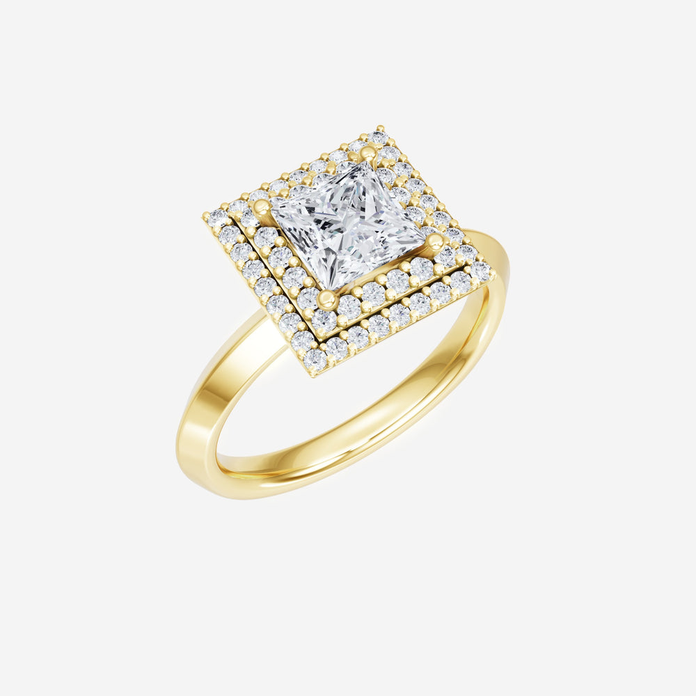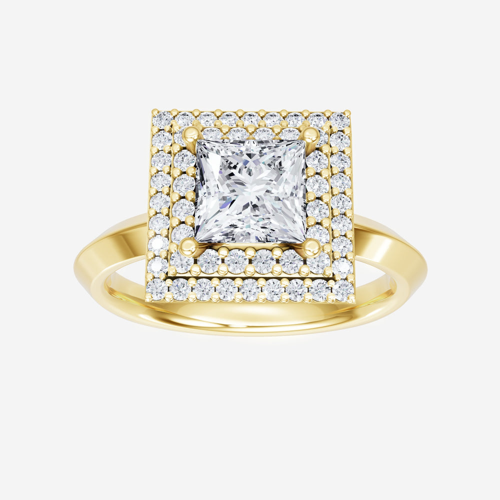 You’ve designed a ring that reflects lasting elegance and grace! Crafted from 14K Yellow Gold, this exquisite Princess lab-grown diamond is the centerpiece of this unique design. This Knife Edge Shank with a Double Halo head showcases the brilliance of the Princess diamond, creating a timeless look. Ideal for those who seek both beauty and meaning, this ring will stand as a testament to cherished memories.