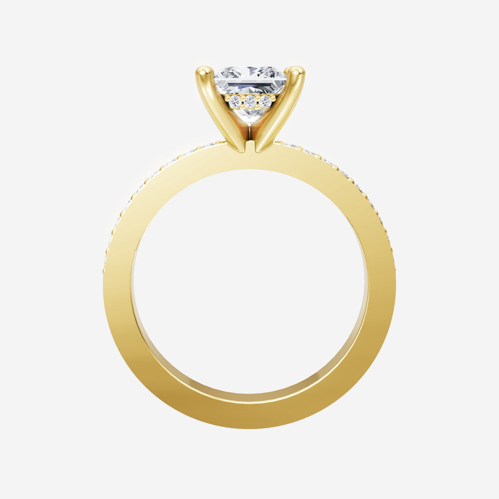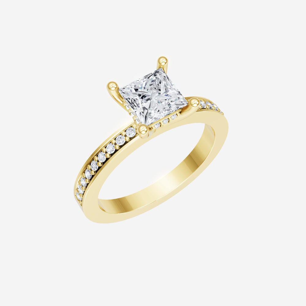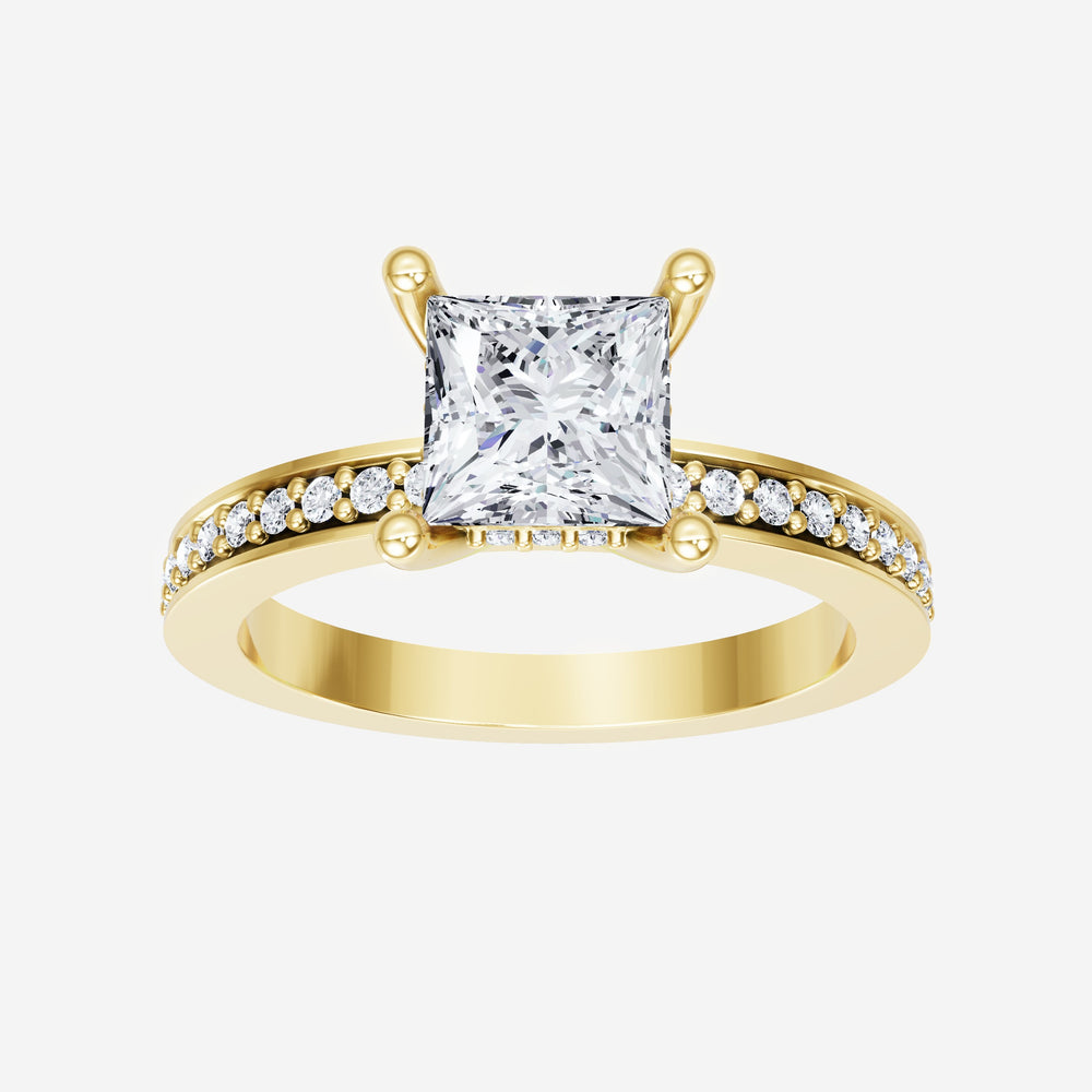 You’ve designed a ring that reflects lasting elegance and grace! Crafted from 14K Yellow Gold, this exquisite Princess lab-grown diamond is the centerpiece of this unique design. This Single Pave Shank with a Hidden Halo head showcases the brilliance of the Princess diamond, creating a timeless look. A perfect choice to celebrate love, commitment, and everything in between.
