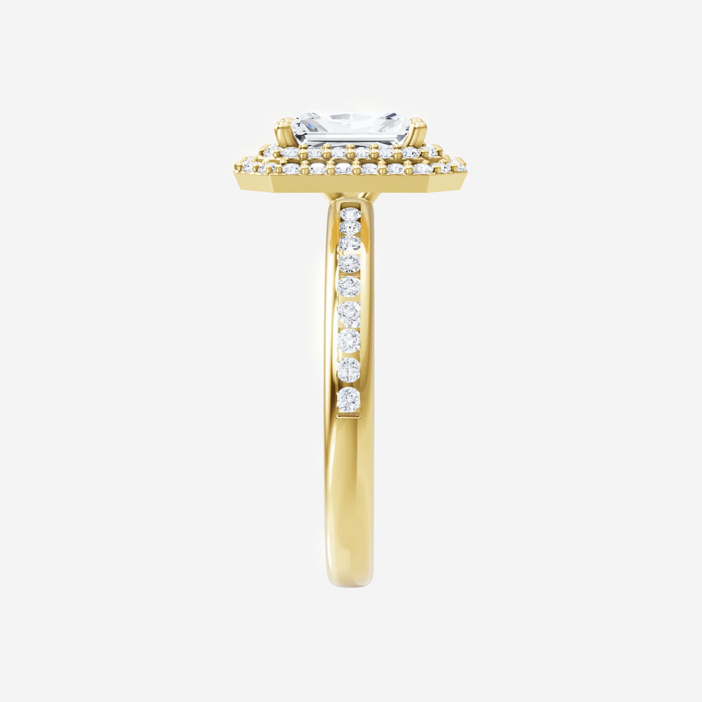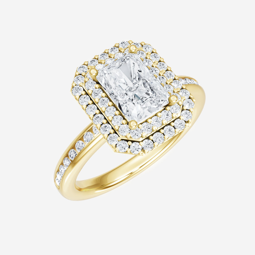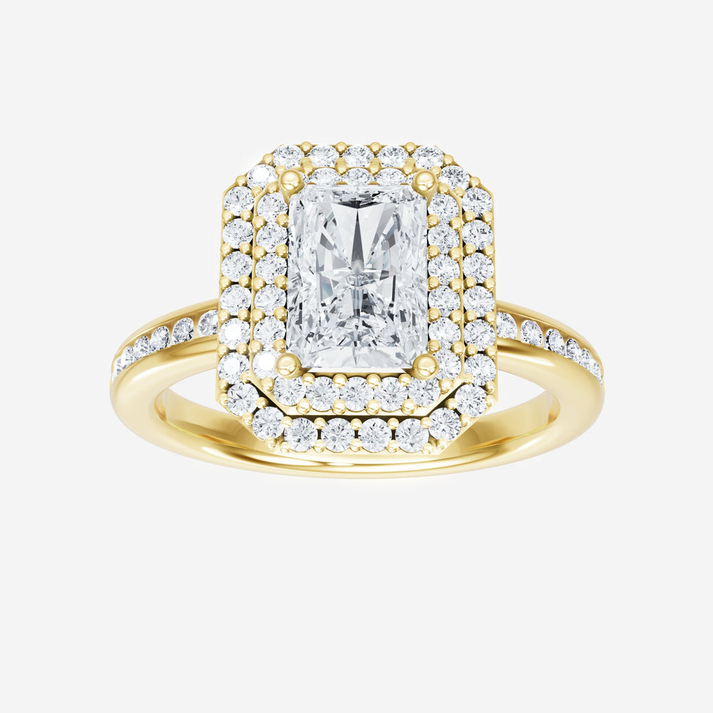 You’ve designed a ring that reflects lasting elegance and grace! Crafted from 14K Yellow Gold, this exquisite Radiant lab-grown diamond is the centerpiece of this unique design. This Channel Set Shank with a Double Halo head showcases the brilliance of the Radiant diamond, creating a timeless look. Whether as a gift or a personal treasure, this ring will forever symbolize the most meaningful moments in life.