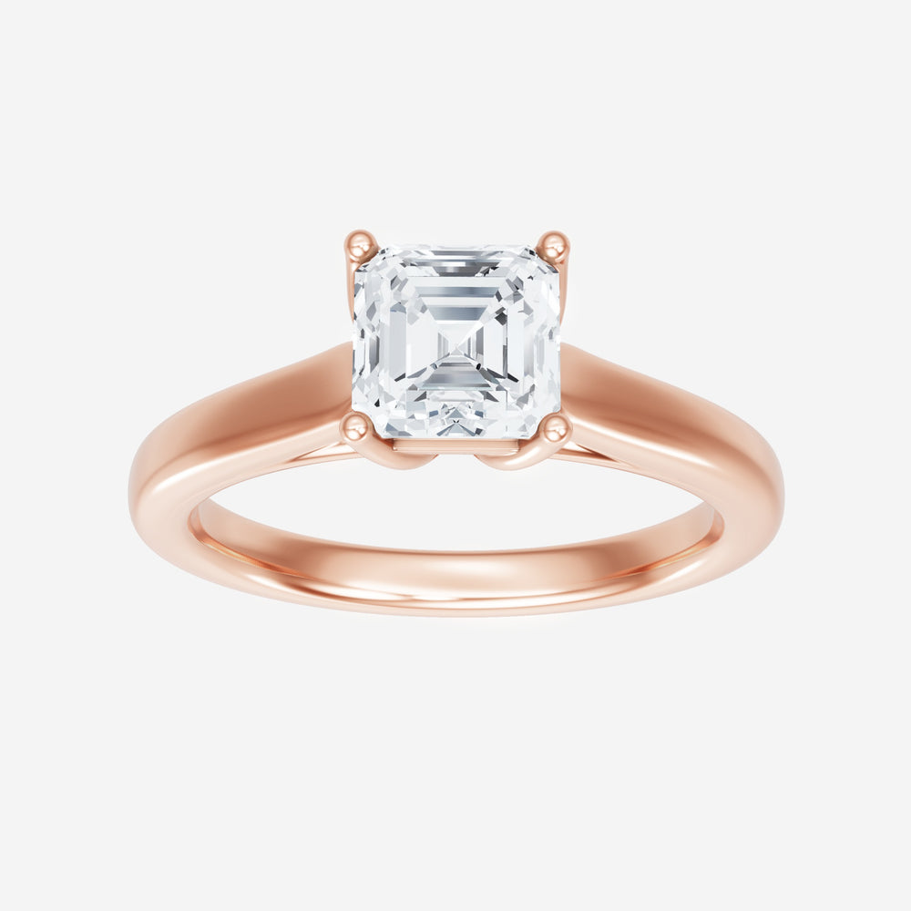 You’ve designed a ring that reflects lasting elegance and grace! Crafted from 14k Rose Gold, this exquisite Asscher lab-grown diamond is the centerpiece of this unique design. This Cathedral Plain Shank with a 4 Prong Flower Head head showcases the brilliance of the Asscher diamond, creating a timeless look. A perfect choice to celebrate love, commitment, and everything in between.