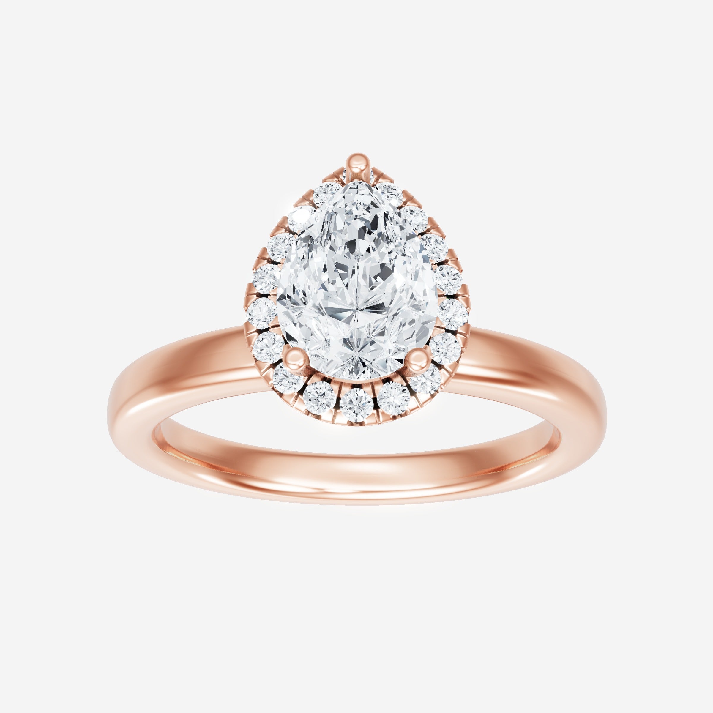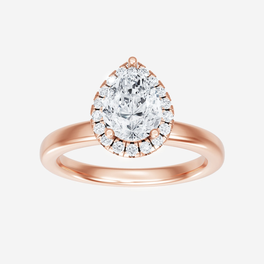 You’ve designed a ring that reflects lasting elegance and grace! Crafted from 14k Rose Gold, this exquisite Pear lab-grown diamond is the centerpiece of this unique design. This Basic Plain Shank with a Micro Halo head showcases the brilliance of the Pear diamond, creating a timeless look. This elegant piece is the perfect symbol of love, strength, and timeless beauty.