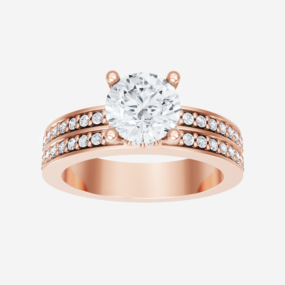 You’ve designed a ring that reflects lasting elegance and grace! Crafted from 14k Rose Gold, this exquisite Round lab-grown diamond is the centerpiece of this unique design. This Double Row Pave with a Hidden Halo head showcases the brilliance of the Round diamond, creating a timeless look. This elegant piece is the perfect symbol of love, strength, and timeless beauty.