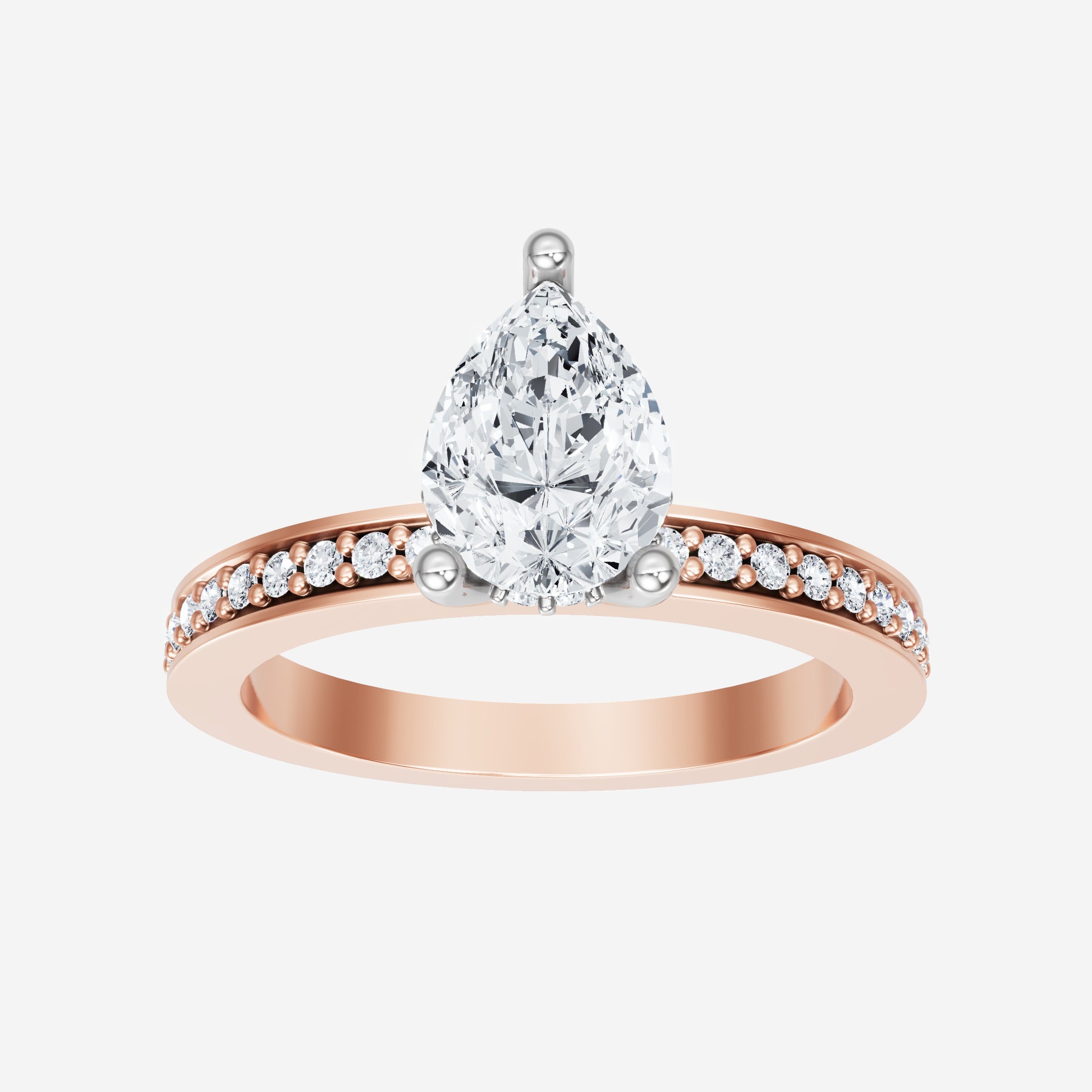 You’ve designed a ring that reflects lasting elegance and grace! Crafted from 14k Rose White Dual Tone, this exquisite Pear lab-grown diamond is the centerpiece of this unique design. This Single Pave Shank with a Hidden Halo head showcases the brilliance of the Pear diamond, creating a timeless look. This ring will become a cherished reminder of life's most treasured moments.