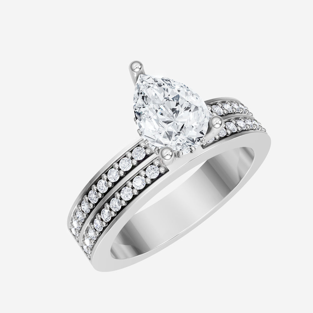 You’ve designed a ring that reflects lasting elegance and grace! Crafted from 14K White Gold, this exquisite Pear lab-grown diamond is the centerpiece of this unique design. This Double Row Pave with a Hidden Halo head showcases the brilliance of the Pear diamond, creating a timeless look. This stunning ring makes the perfect symbol of everlasting love and devotion.