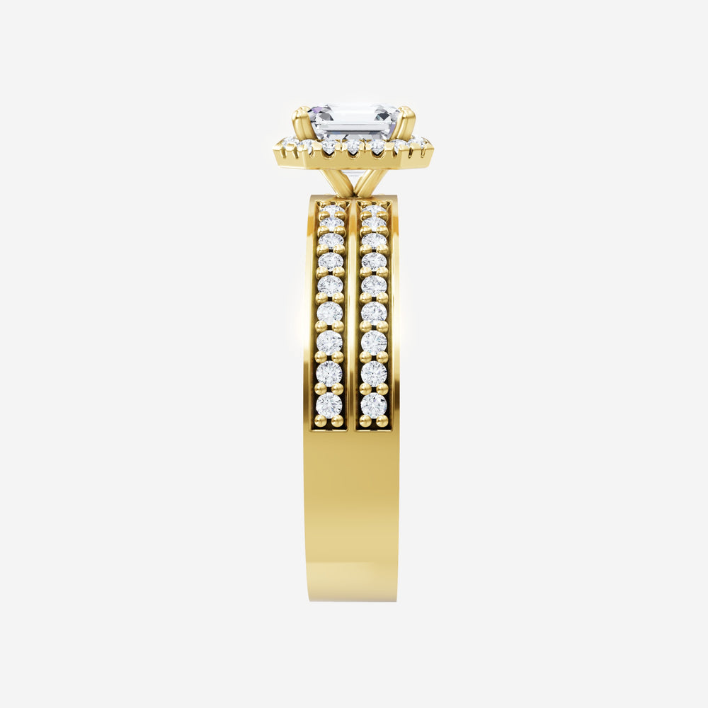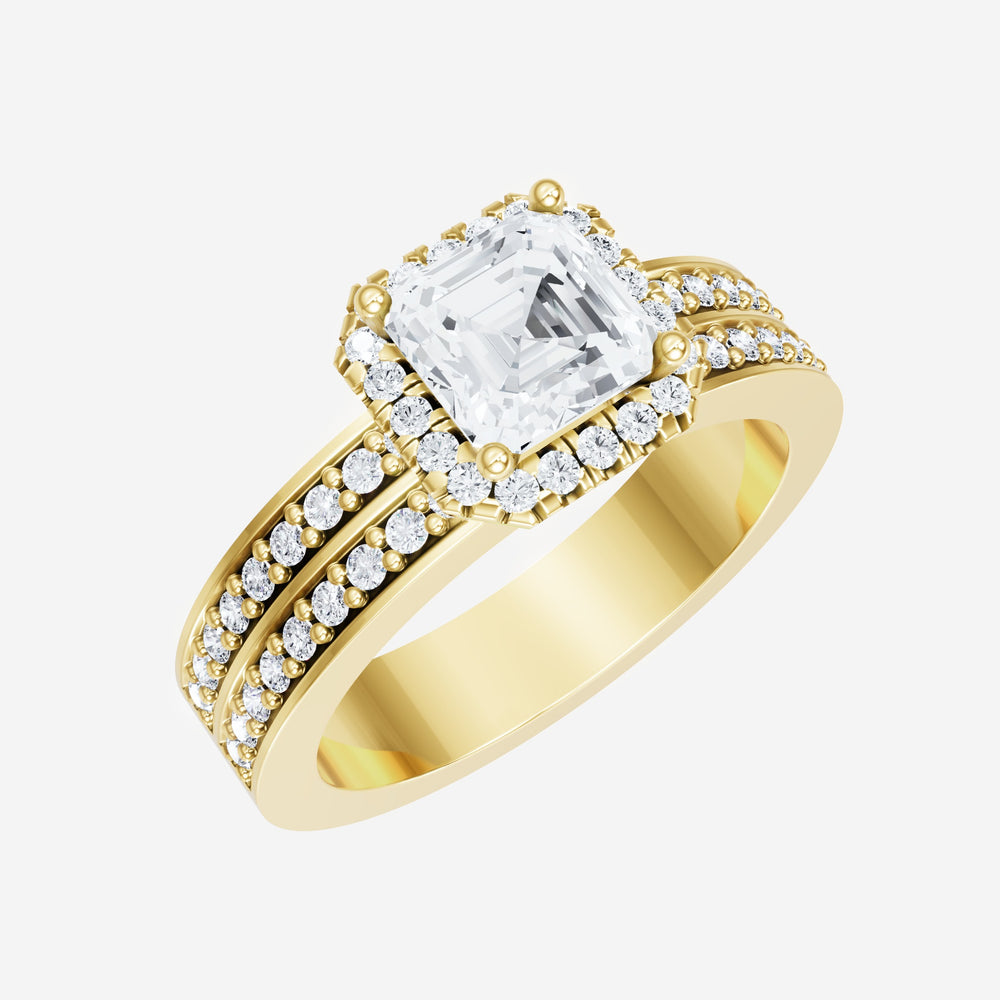 You’ve designed a ring that reflects lasting elegance and grace! Crafted from 14K Yellow Gold, this exquisite Asscher lab-grown diamond is the centerpiece of this unique design. This Double Row Pave with a Micro Halo head showcases the brilliance of the Asscher diamond, creating a timeless look. It's a piece of elegance and beauty, perfect for marking life's most beautiful occasions.