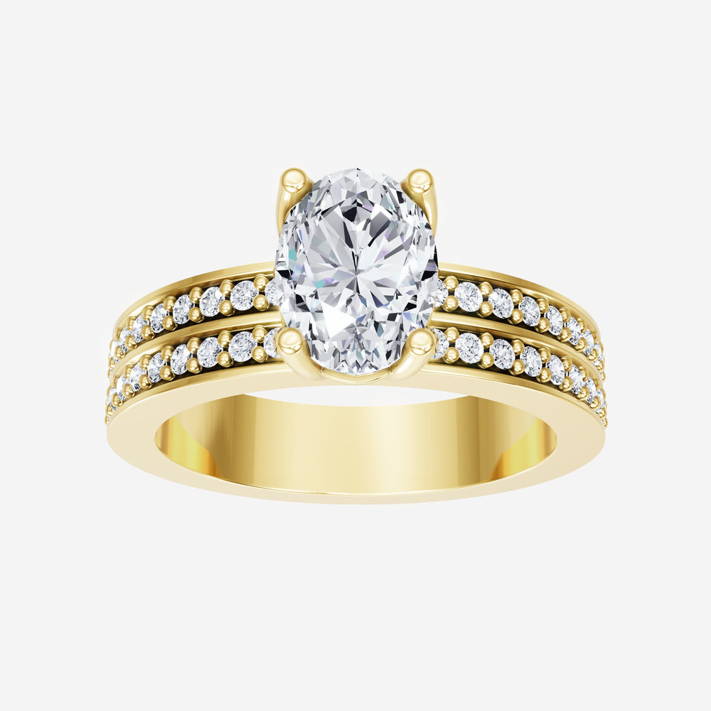 You’ve designed a ring that reflects lasting elegance and grace! Crafted from 14K Yellow Gold, this exquisite Oval lab-grown diamond is the centerpiece of this unique design. This Double Row Pave with a 4 Prong Flower Head head showcases the brilliance of the Oval diamond, creating a timeless look. This stunning ring makes the perfect symbol of everlasting love and devotion.