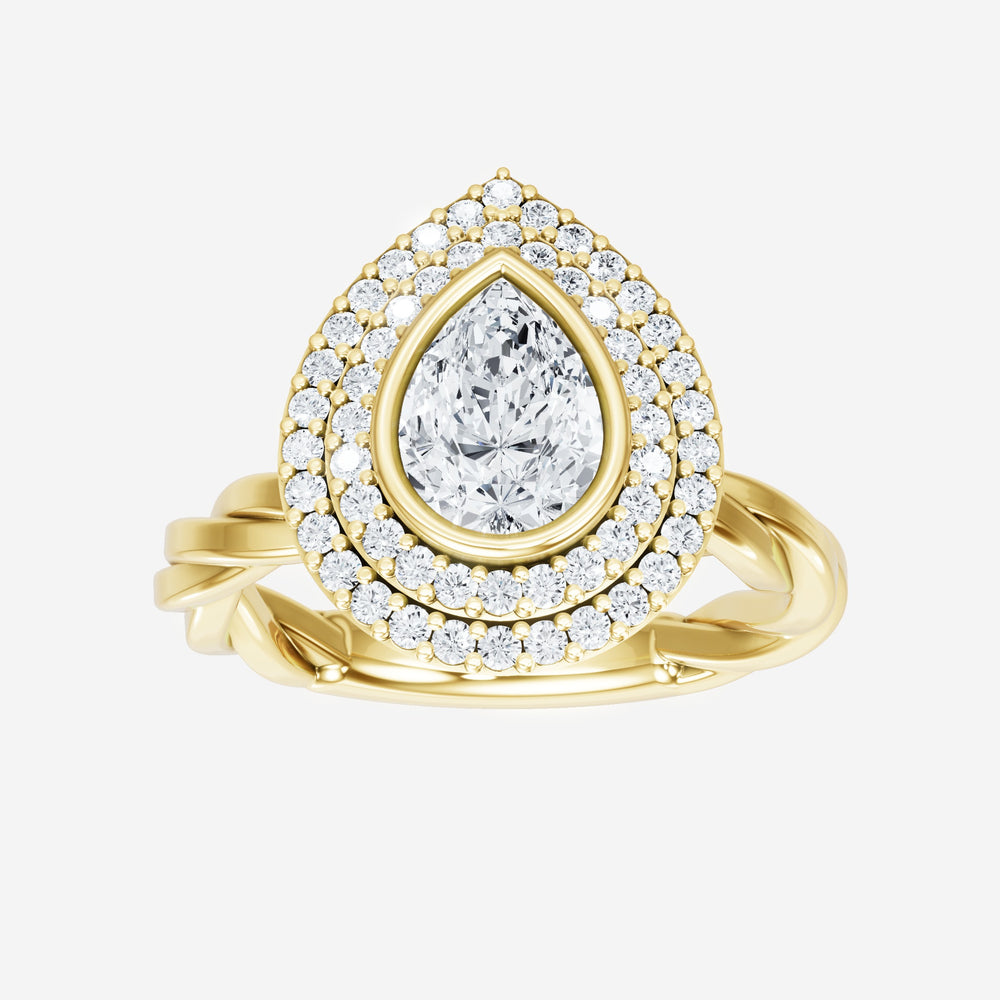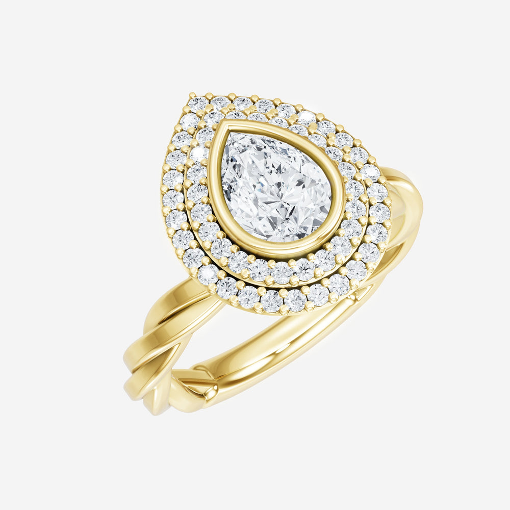 You’ve designed a ring that reflects lasting elegance and grace! Crafted from 14K Yellow Gold, this exquisite Pear lab-grown diamond is the centerpiece of this unique design. This Rope Plain Shank with a Bezel Set Center With Double Halo head showcases the brilliance of the Pear diamond, creating a timeless look. This ring will become a cherished reminder of life's most treasured moments.