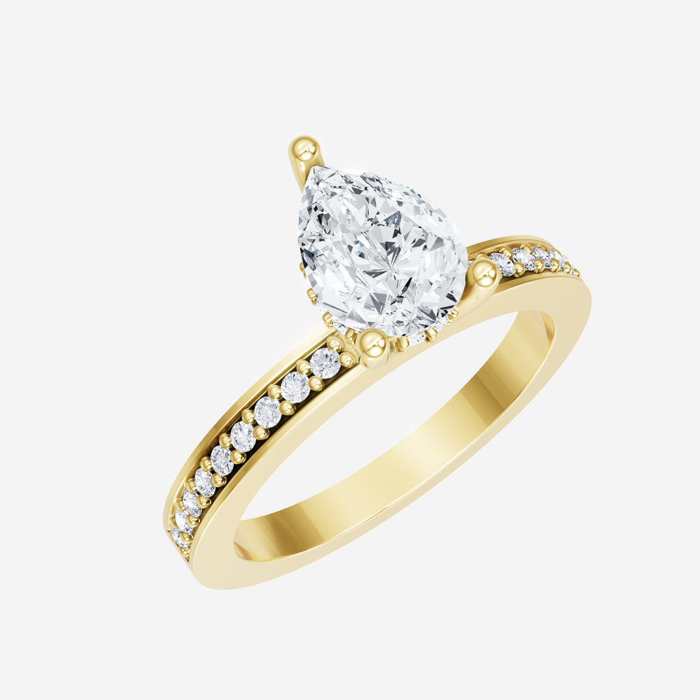You’ve designed a ring that reflects lasting elegance and grace! Crafted from 14K Yellow Gold, this exquisite Pear lab-grown diamond is the centerpiece of this unique design. This Single Pave Shank with a Hidden Halo head showcases the brilliance of the Pear diamond, creating a timeless look. Whether as a gift or a personal treasure, this ring will forever symbolize the most meaningful moments in life.