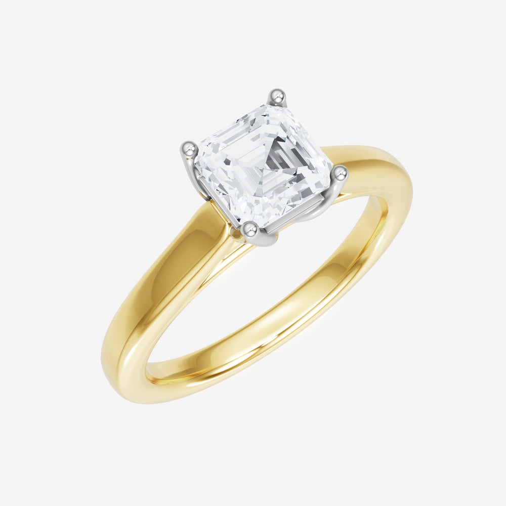 You’ve designed a ring that reflects lasting elegance and grace! Crafted from 14k Yellow White Dual Tone, this exquisite Asscher lab-grown diamond is the centerpiece of this unique design. This Cathedral Plain Shank with a 4 Prong Flower Head head showcases the brilliance of the Asscher diamond, creating a timeless look. Whether as a gift or a personal treasure, this ring will forever symbolize the most meaningful moments in life.