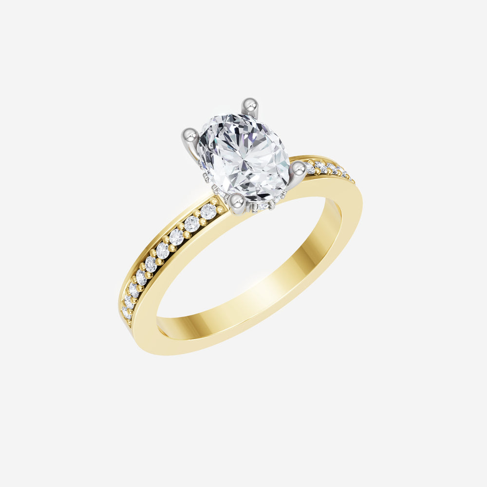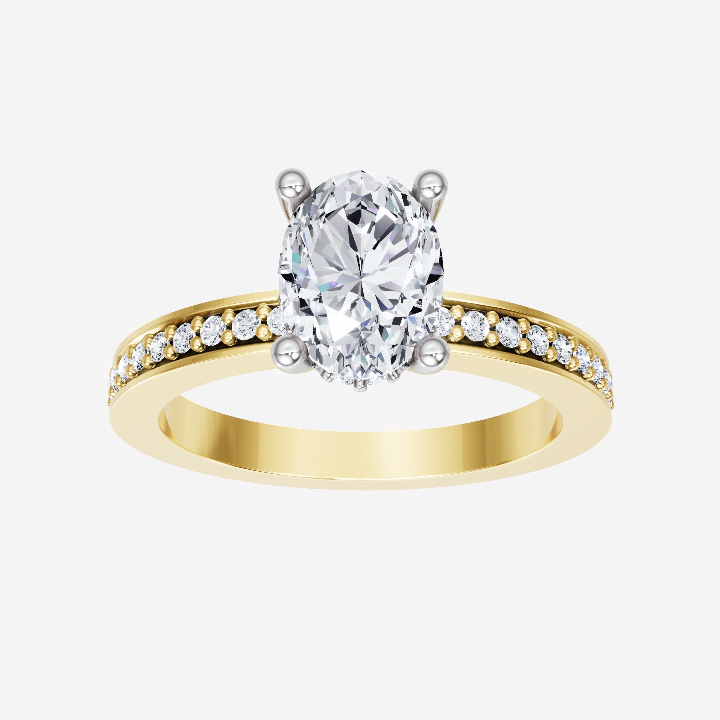 You’ve designed a ring that reflects lasting elegance and grace! Crafted from 14k Yellow White Dual Tone, this exquisite Oval lab-grown diamond is the centerpiece of this unique design. This Single Pave Shank with a Hidden Halo head showcases the brilliance of the Oval diamond, creating a timeless look. With this ring, celebrate every moment of joy, success, and love.
