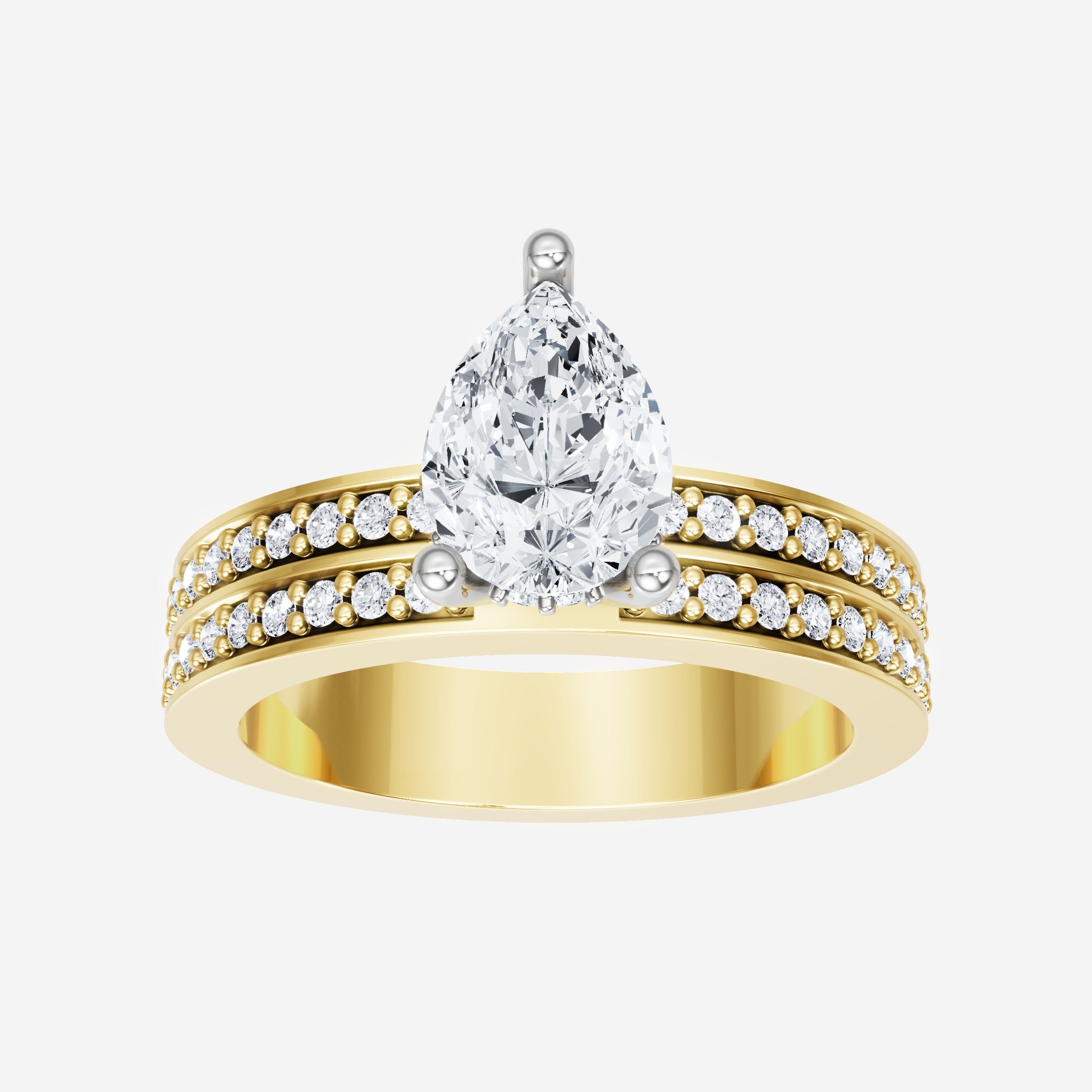 You’ve designed a ring that reflects lasting elegance and grace! Crafted from 14k Yellow White Dual Tone, this exquisite Pear lab-grown diamond is the centerpiece of this unique design. This Double Row Pave with a Hidden Halo head showcases the brilliance of the Pear diamond, creating a timeless look. Ideal for those who seek both beauty and meaning, this ring will stand as a testament to cherished memories.