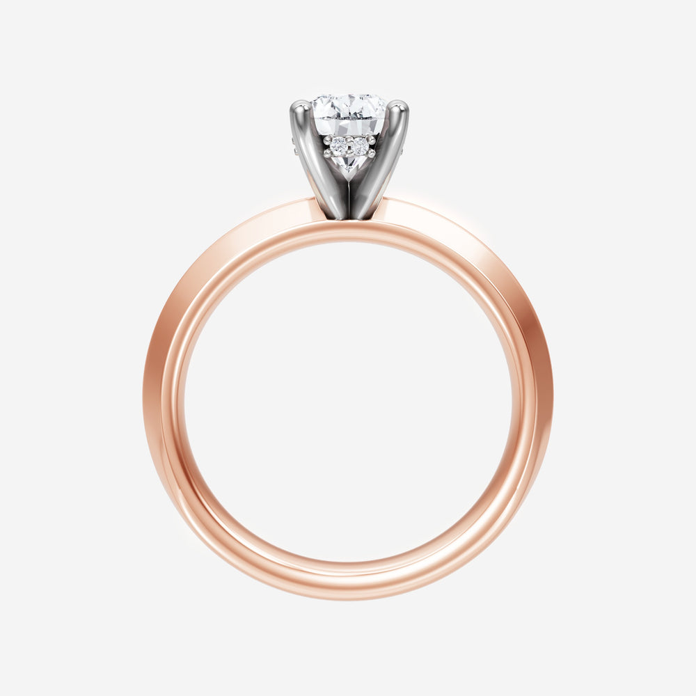 You’ve designed a ring that reflects lasting elegance and grace! Crafted from 18k Rose White Dual Tone, this exquisite Pear lab-grown diamond is the centerpiece of this unique design. This Knife Edge Shank with a Hidden Halo head showcases the brilliance of the Pear diamond, creating a timeless look. A perfect choice to celebrate love, commitment, and everything in between.