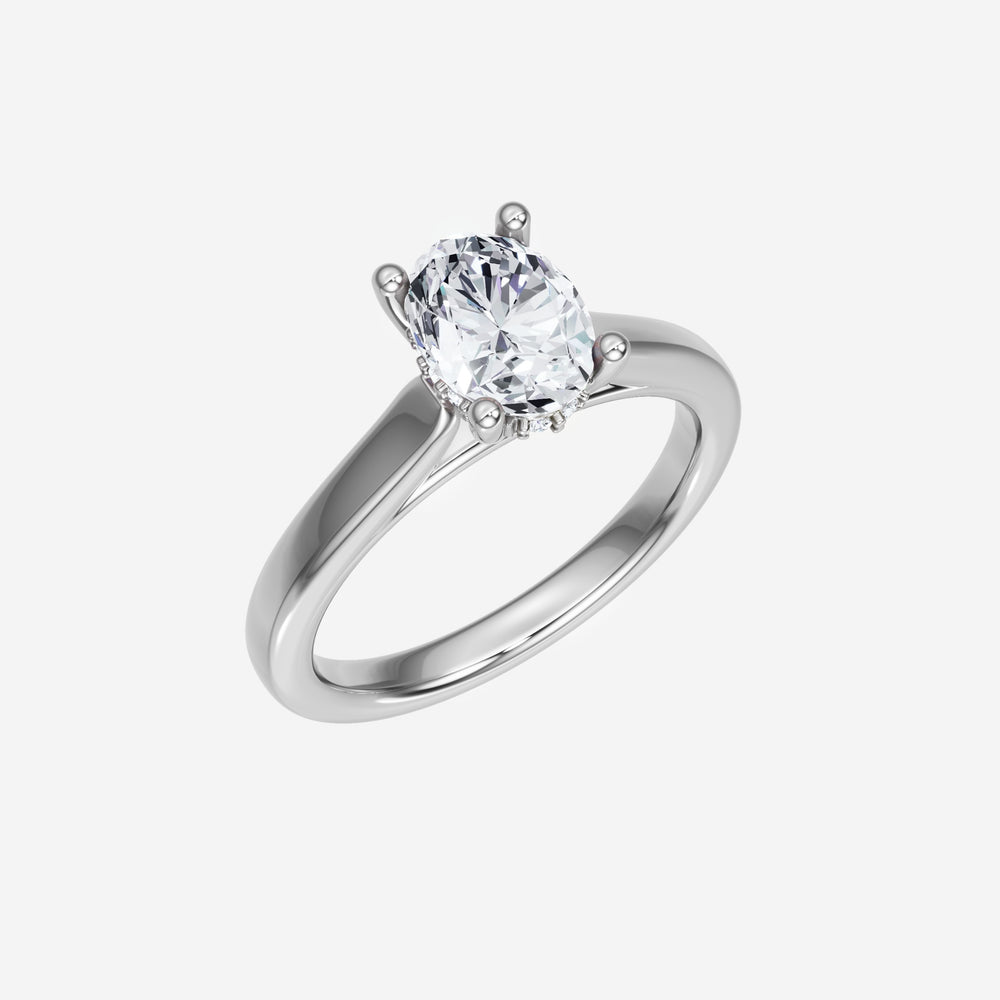 You’ve designed a ring that reflects lasting elegance and grace! Crafted from 18K White Gold, this exquisite Oval lab-grown diamond is the centerpiece of this unique design. This Cathedral Plain Shank with a Hidden Halo head showcases the brilliance of the Oval diamond, creating a timeless look. Whether as a gift or a personal treasure, this ring will forever symbolize the most meaningful moments in life.