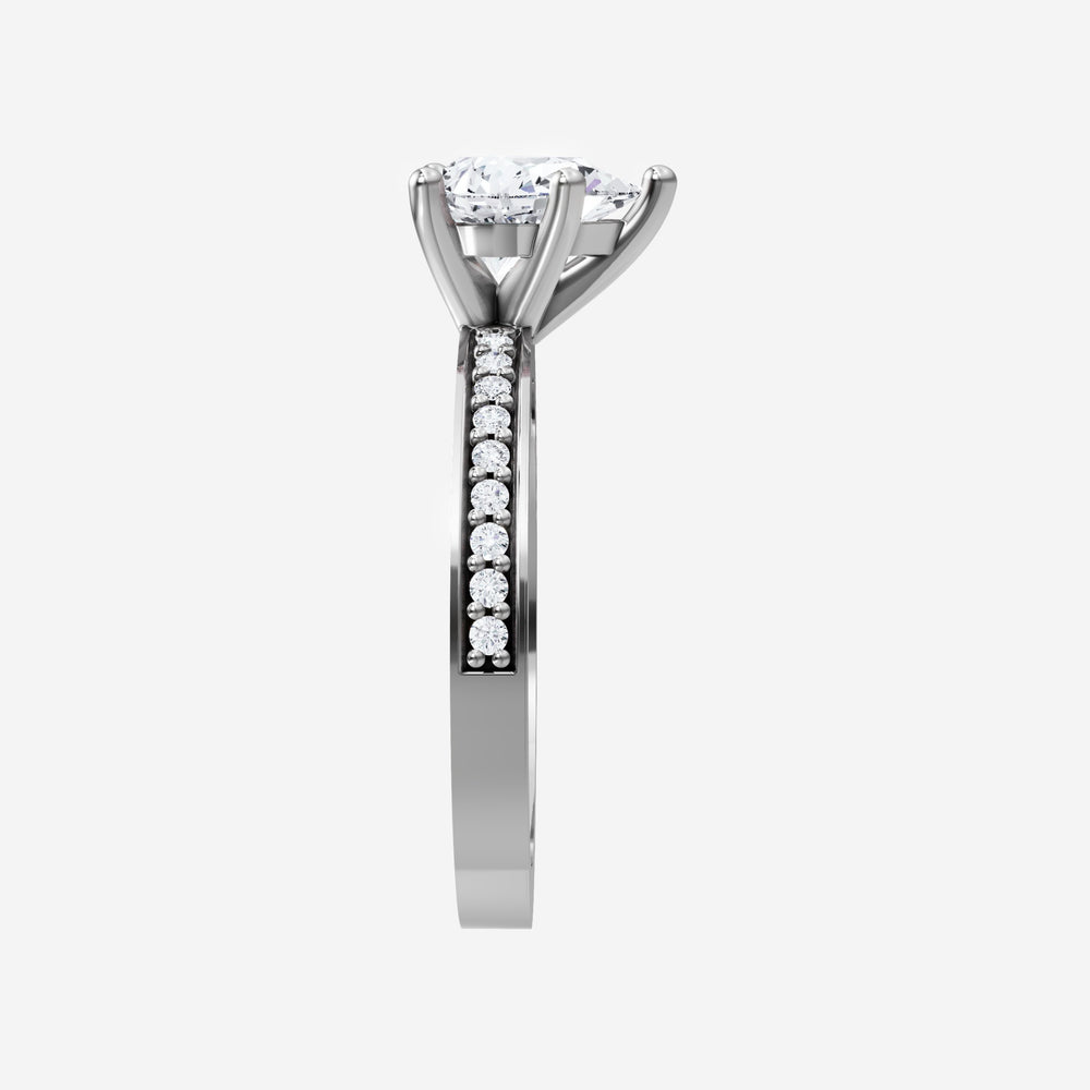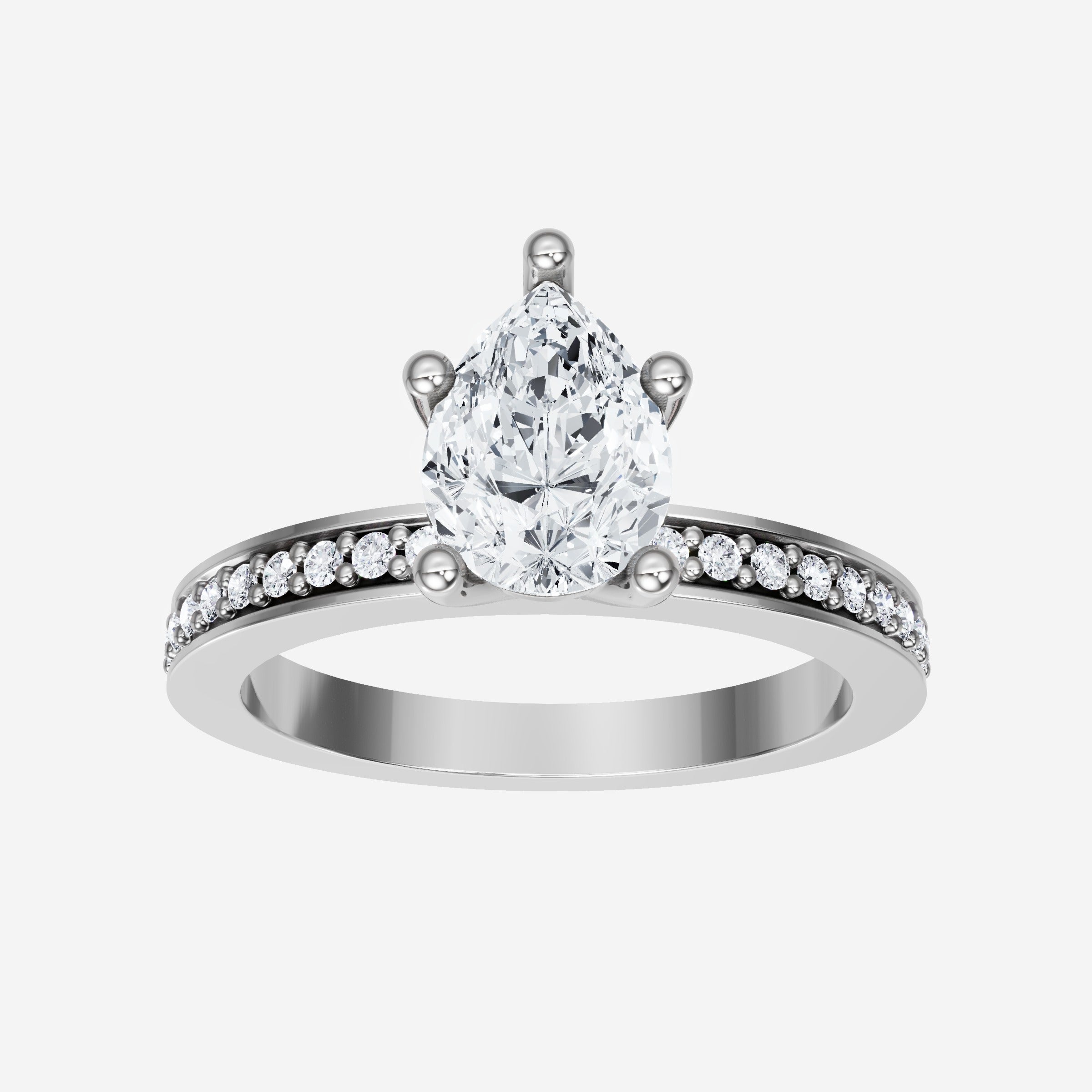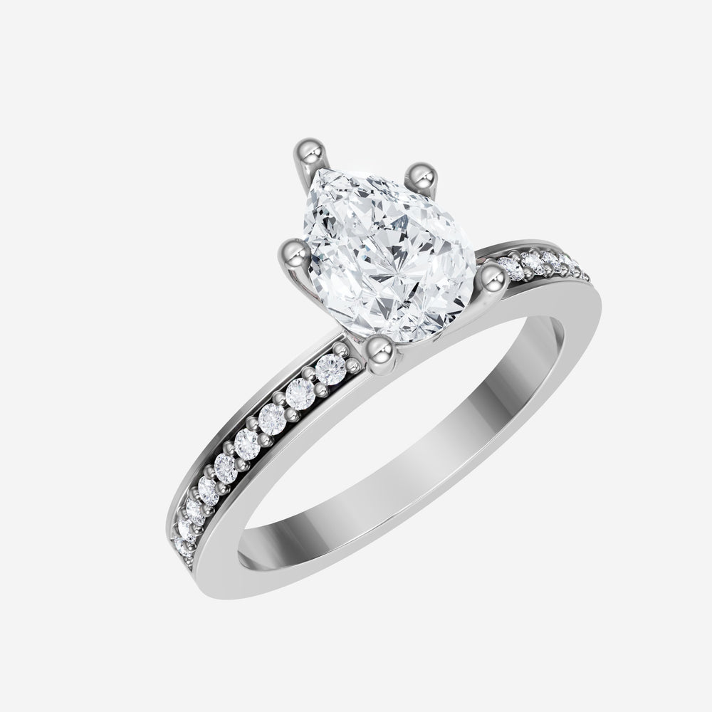 You’ve designed a ring that reflects lasting elegance and grace! Crafted from 18K White Gold, this exquisite Pear lab-grown diamond is the centerpiece of this unique design. This Single Pave Shank with a 5 Prong Head head showcases the brilliance of the Pear diamond, creating a timeless look. This stunning ring makes the perfect symbol of everlasting love and devotion.