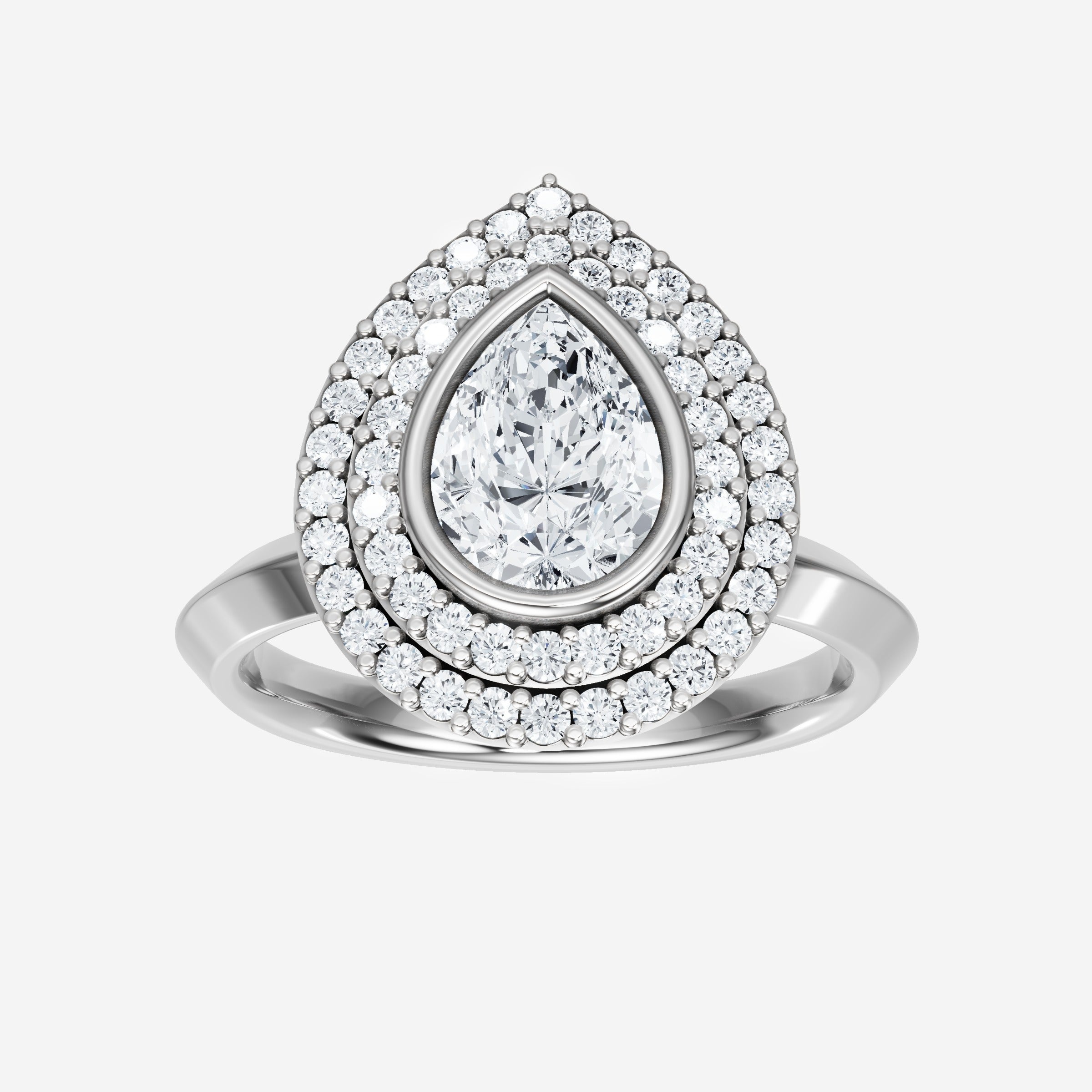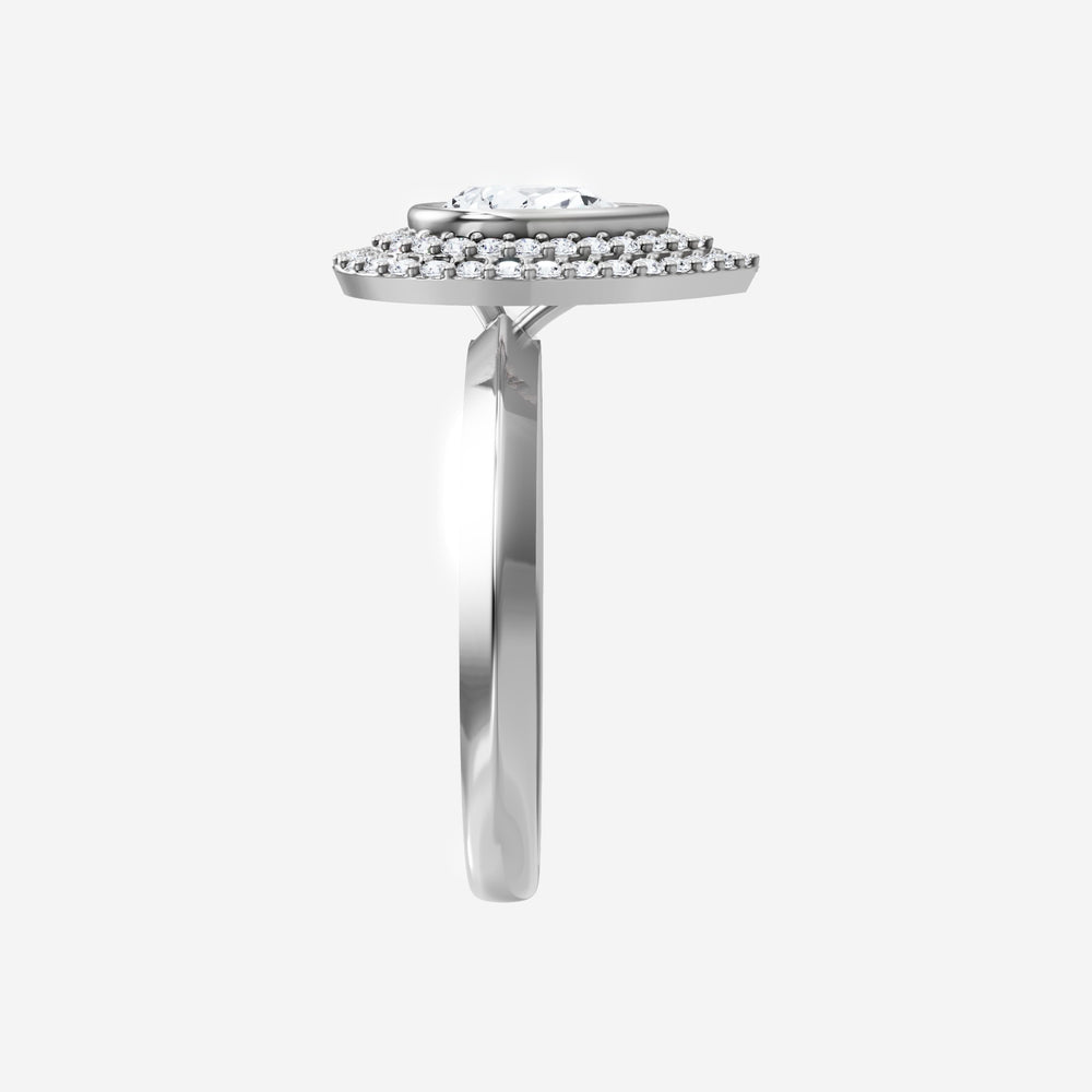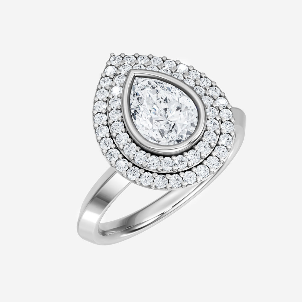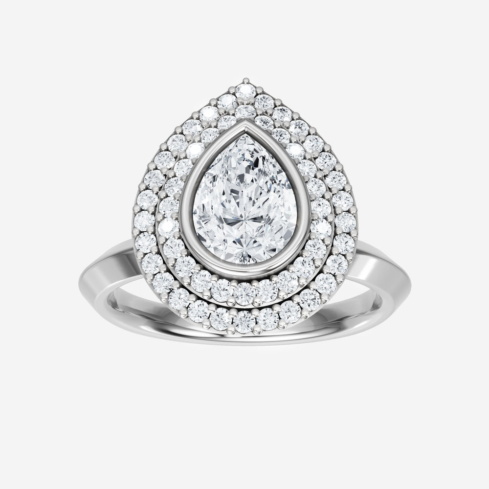 You’ve designed a ring that reflects lasting elegance and grace! Crafted from 18K White Gold, this exquisite Pear lab-grown diamond is the centerpiece of this unique design. This Knife Edge Shank with a Bezel Set Center With Double Halo head showcases the brilliance of the Pear diamond, creating a timeless look. With this ring, celebrate every moment of joy, success, and love.