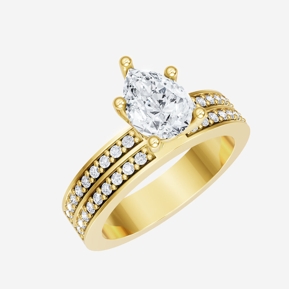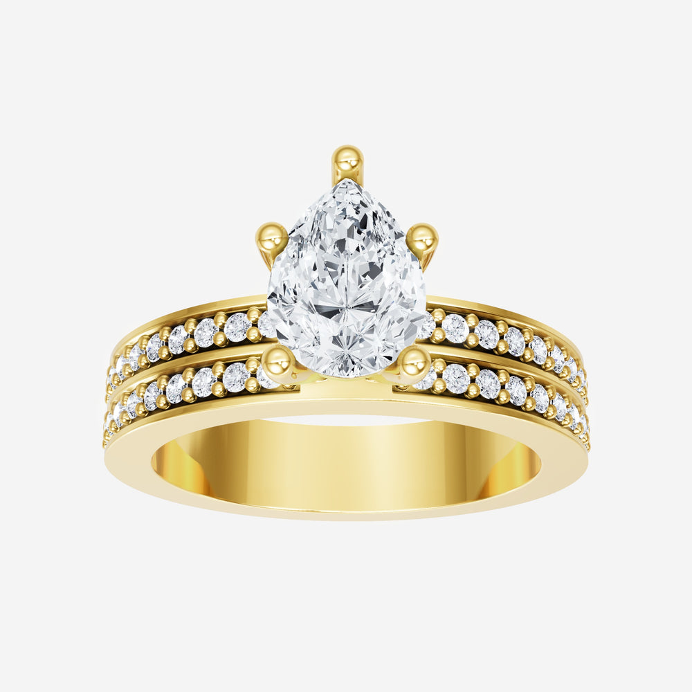 You’ve designed a ring that reflects lasting elegance and grace! Crafted from 18K Yellow Gold, this exquisite Pear lab-grown diamond is the centerpiece of this unique design. This Double Row Pave with a 4 Prong Flower Head head showcases the brilliance of the Pear diamond, creating a timeless look. This elegant piece is the perfect symbol of love, strength, and timeless beauty.