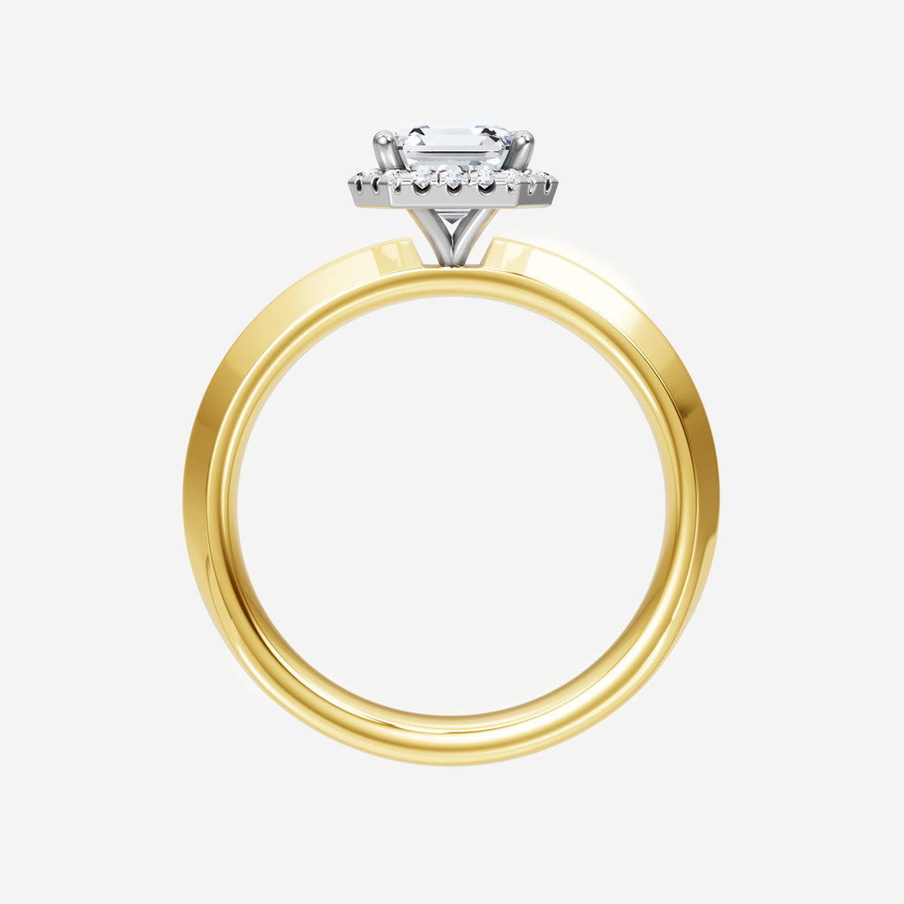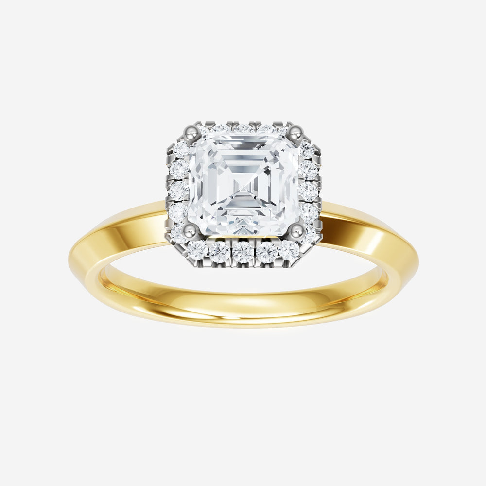 You’ve designed a ring that reflects lasting elegance and grace! Crafted from 18k Yellow White Dual Tone, this exquisite Asscher lab-grown diamond is the centerpiece of this unique design. This Knife Edge Shank with a Micro Halo head showcases the brilliance of the Asscher diamond, creating a timeless look. This ring will become a cherished reminder of life's most treasured moments.