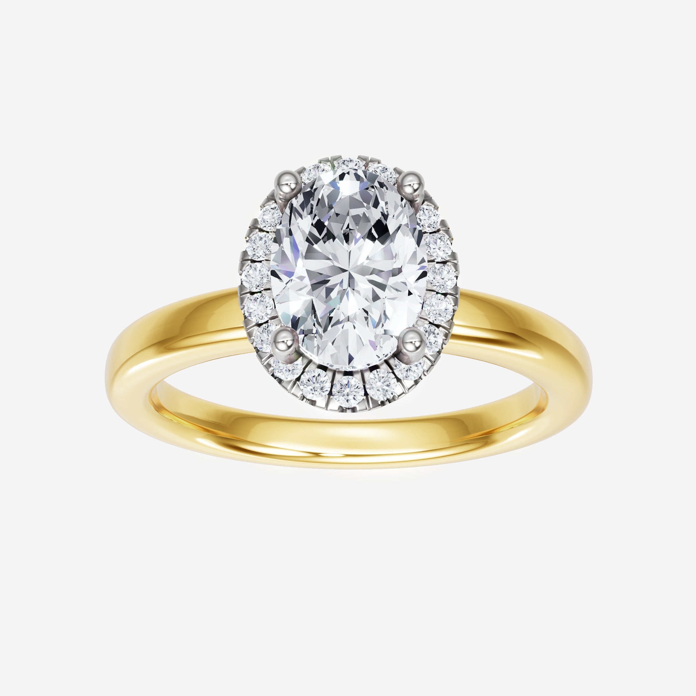 You’ve designed a ring that reflects lasting elegance and grace! Crafted from 18k Yellow White Dual Tone, this exquisite Oval lab-grown diamond is the centerpiece of this unique design. This Basic Plain Shank with a Micro Halo head showcases the brilliance of the Oval diamond, creating a timeless look. With this ring, celebrate every moment of joy, success, and love.