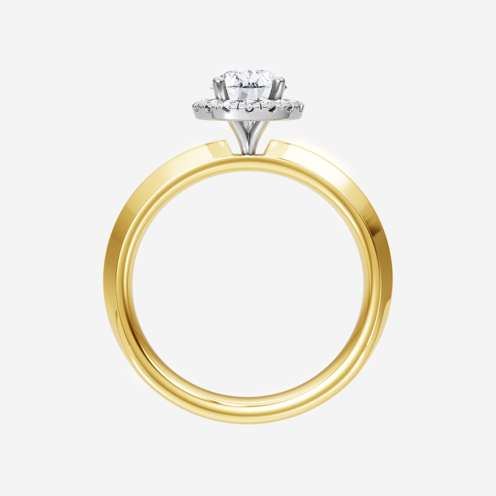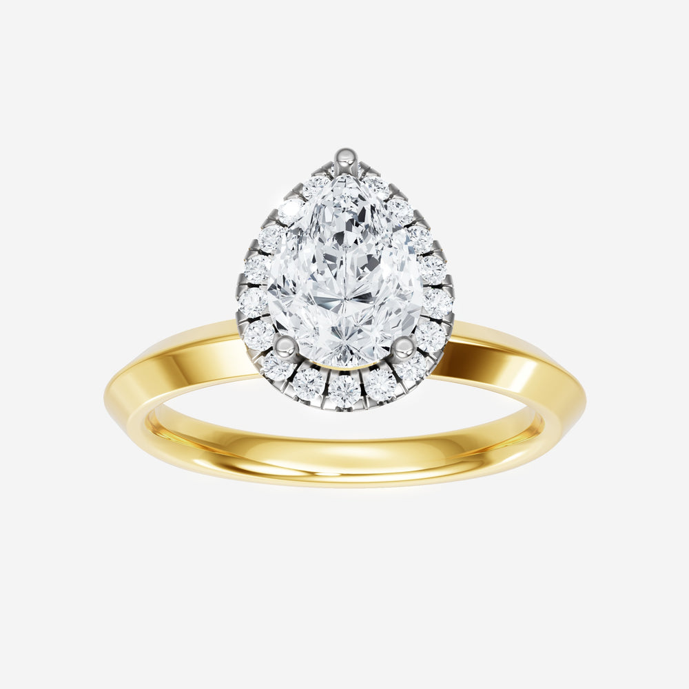 You’ve designed a ring that reflects lasting elegance and grace! Crafted from 18k Yellow White Dual Tone, this exquisite Pear lab-grown diamond is the centerpiece of this unique design. This Knife Edge Shank with a Micro Halo head showcases the brilliance of the Pear diamond, creating a timeless look. This elegant piece is the perfect symbol of love, strength, and timeless beauty.