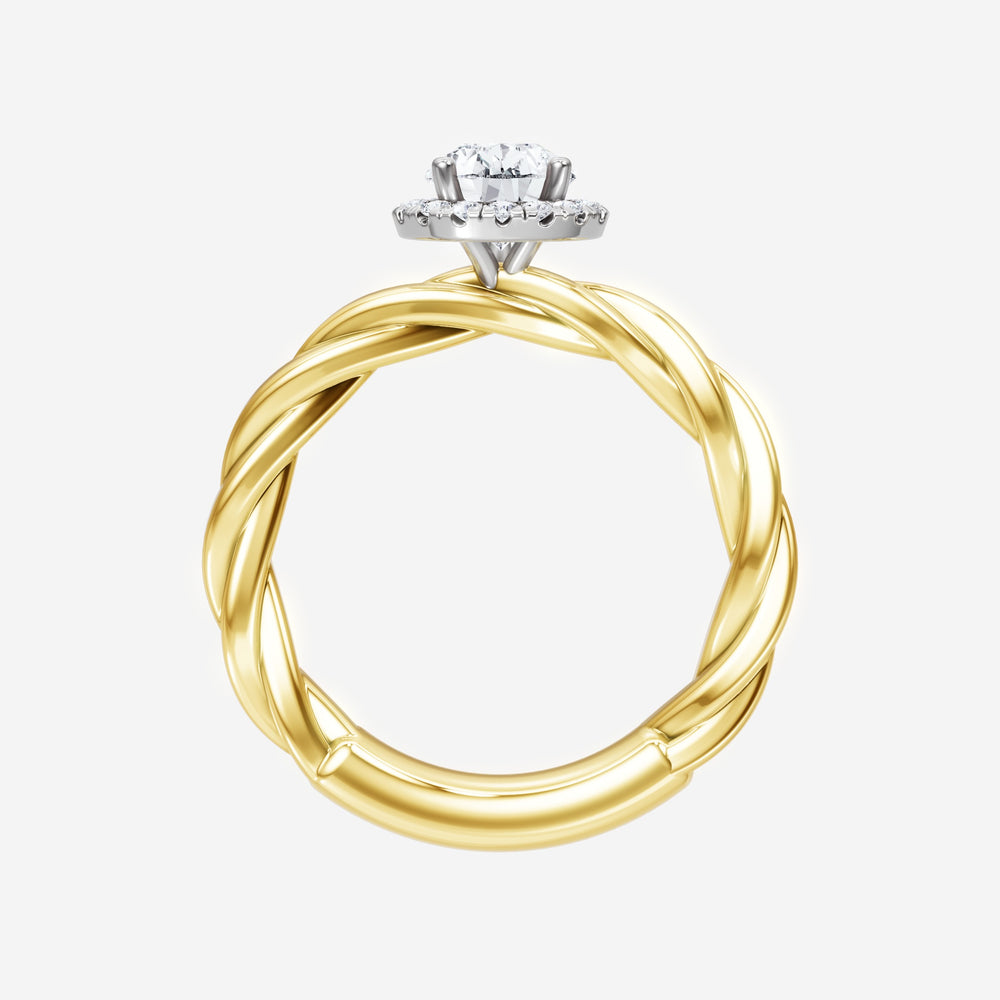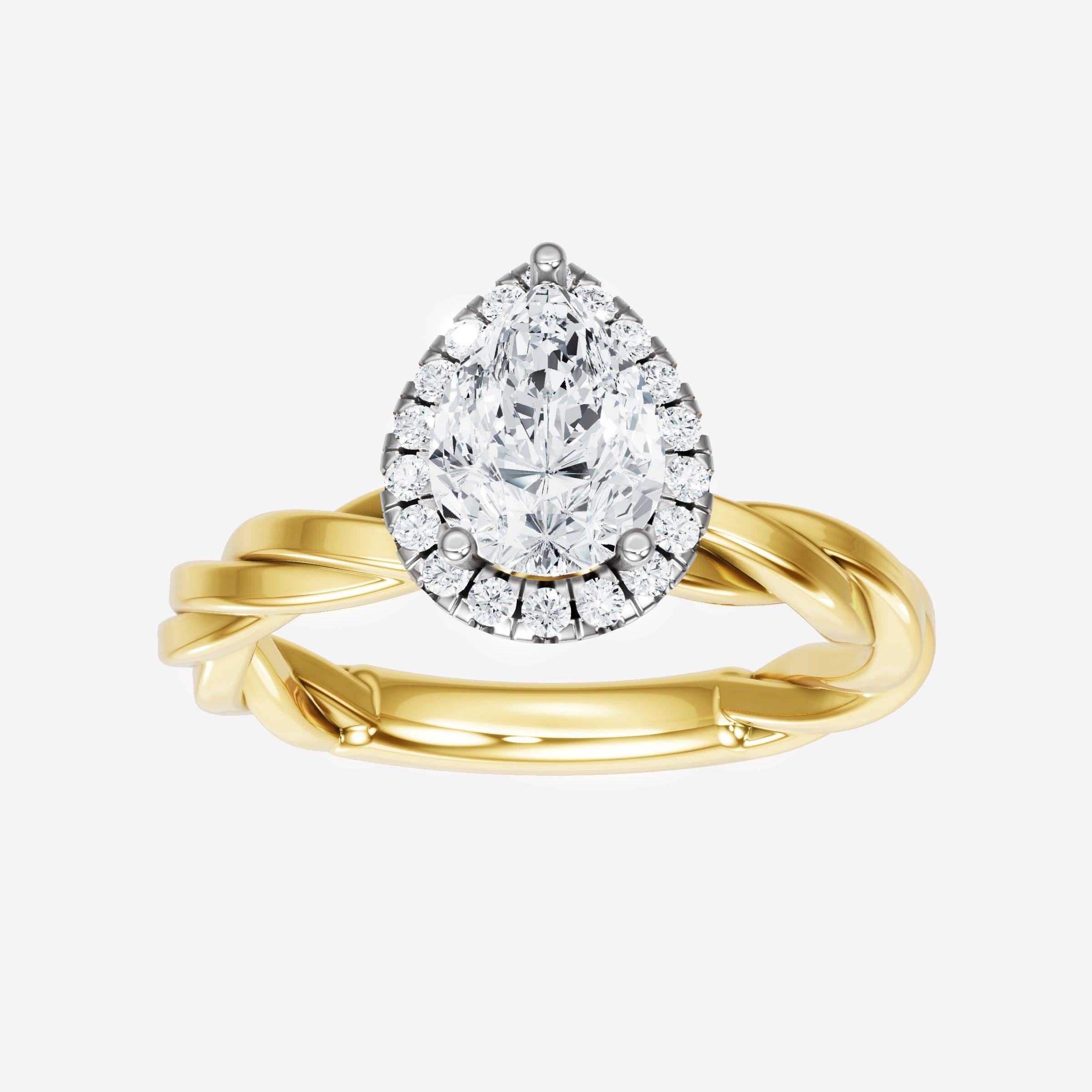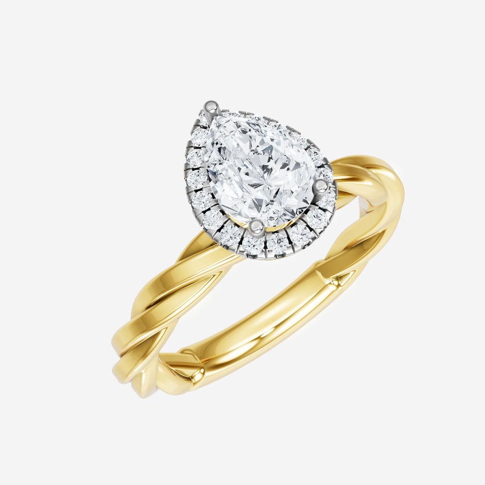 You’ve designed a ring that reflects lasting elegance and grace! Crafted from 18k Yellow White Dual Tone, this exquisite Pear lab-grown diamond is the centerpiece of this unique design. This Rope Plain Shank with a Micro Halo head showcases the brilliance of the Pear diamond, creating a timeless look. This stunning ring makes the perfect symbol of everlasting love and devotion.