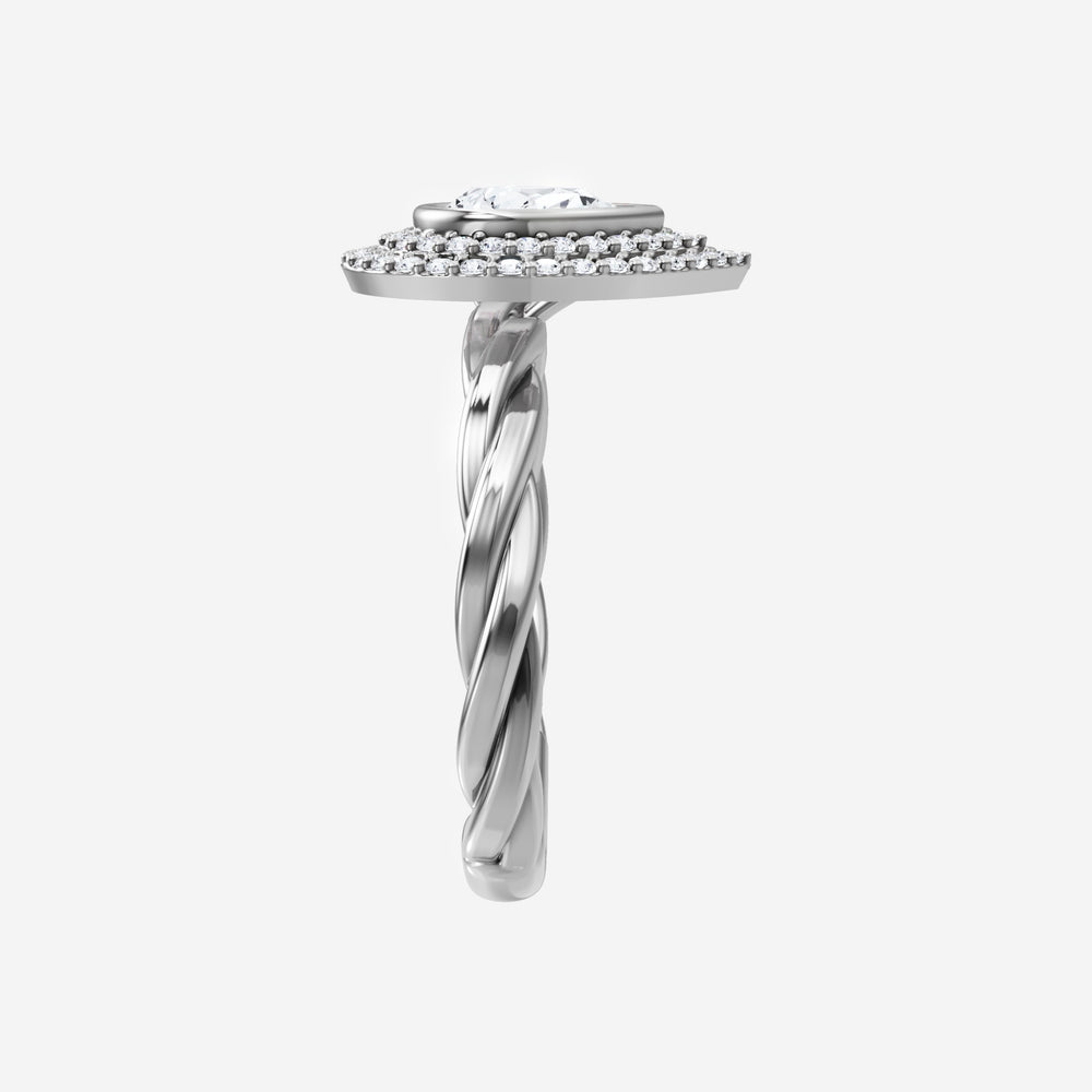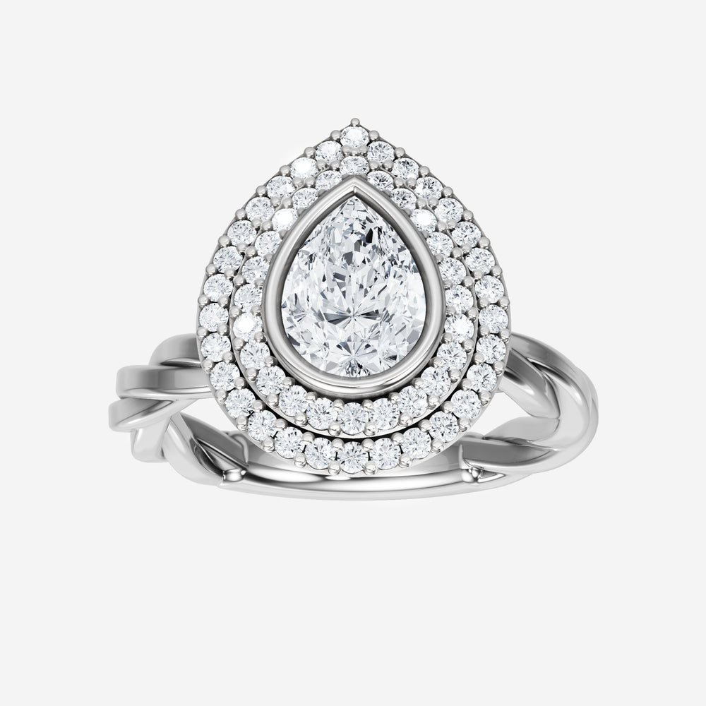 You’ve designed a ring that reflects lasting elegance and grace! Crafted from 950 Platinum, this exquisite Pear lab-grown diamond is the centerpiece of this unique design. This Rope Plain Shank with a Bezel Set Center With Double Halo head showcases the brilliance of the Pear diamond, creating a timeless look. This stunning ring makes the perfect symbol of everlasting love and devotion.
