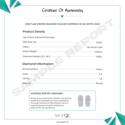 Free 925S 1CT Diamond Earring (Worth $349) with Purchase of $1699+