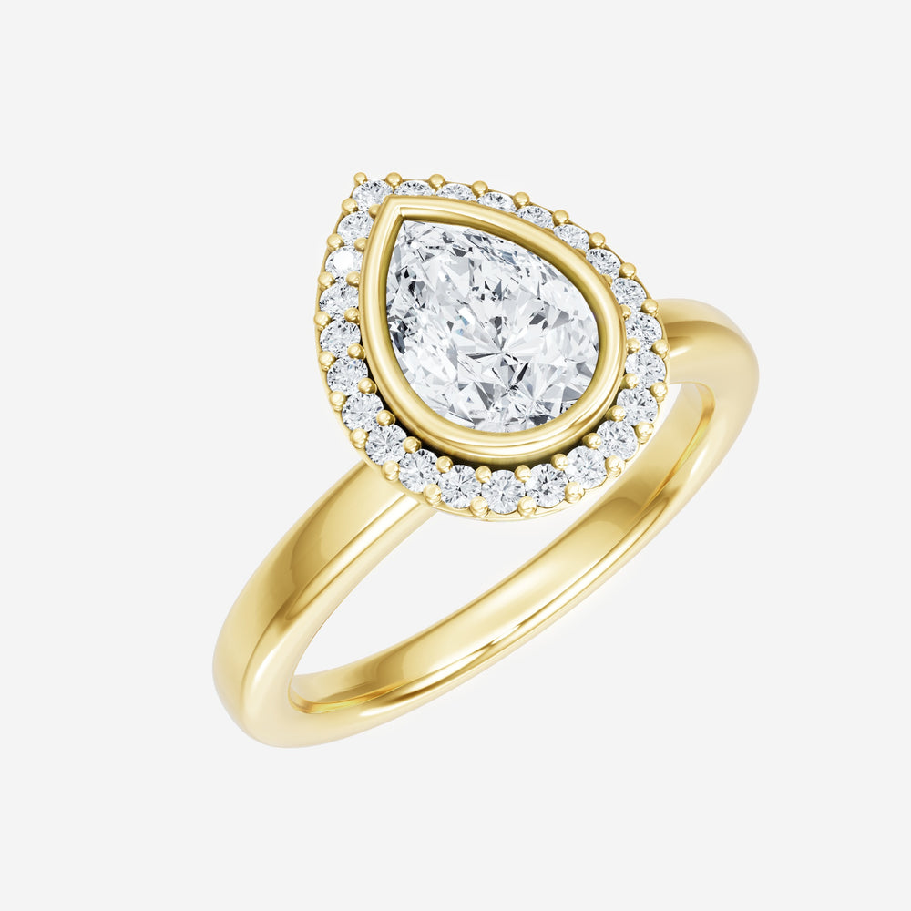 You’ve designed a ring that reflects lasting elegance and grace! Crafted from 14K Yellow Gold, this exquisite Pear lab-grown diamond is the centerpiece of this unique design. This Basic Plain Shank with a Bezel Set Center With Single Halo head showcases the brilliance of the Pear diamond, creating a timeless look. Whether as a gift or a personal treasure, this ring will forever symbolize the most meaningful moments in life.