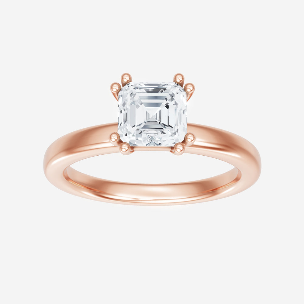 You’ve designed a ring that reflects lasting elegance and grace! Crafted from 14k Rose Gold, this exquisite Asscher lab-grown diamond is the centerpiece of this unique design. This Basic Plain Shank with a 4 Prong Split Prong head showcases the brilliance of the Asscher diamond, creating a timeless look. It's a piece of elegance and beauty, perfect for marking life's most beautiful occasions.