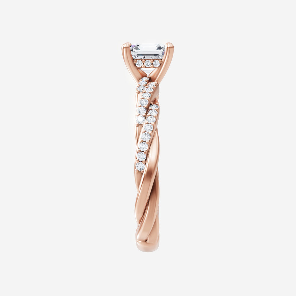 You’ve designed a ring that reflects lasting elegance and grace! Crafted from 14k Rose Gold, this exquisite Asscher lab-grown diamond is the centerpiece of this unique design. This Rope Diamond Shank with a Hidden Halo head showcases the brilliance of the Asscher diamond, creating a timeless look. It's a piece of elegance and beauty, perfect for marking life's most beautiful occasions.