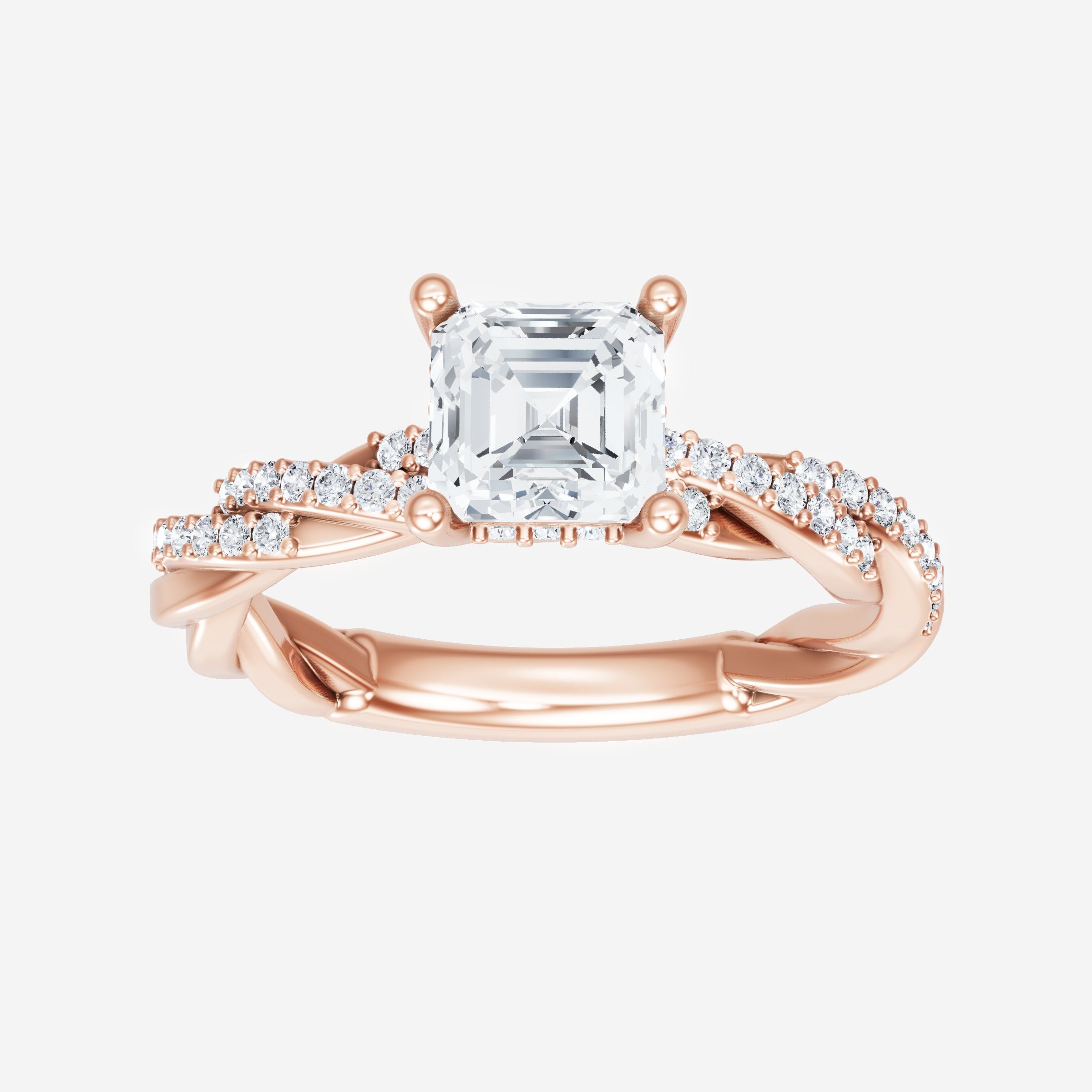 You’ve designed a ring that reflects lasting elegance and grace! Crafted from 14k Rose Gold, this exquisite Asscher lab-grown diamond is the centerpiece of this unique design. This Rope Diamond Shank with a Hidden Halo head showcases the brilliance of the Asscher diamond, creating a timeless look. Ideal for those who seek both beauty and meaning, this ring will stand as a testament to cherished memories.