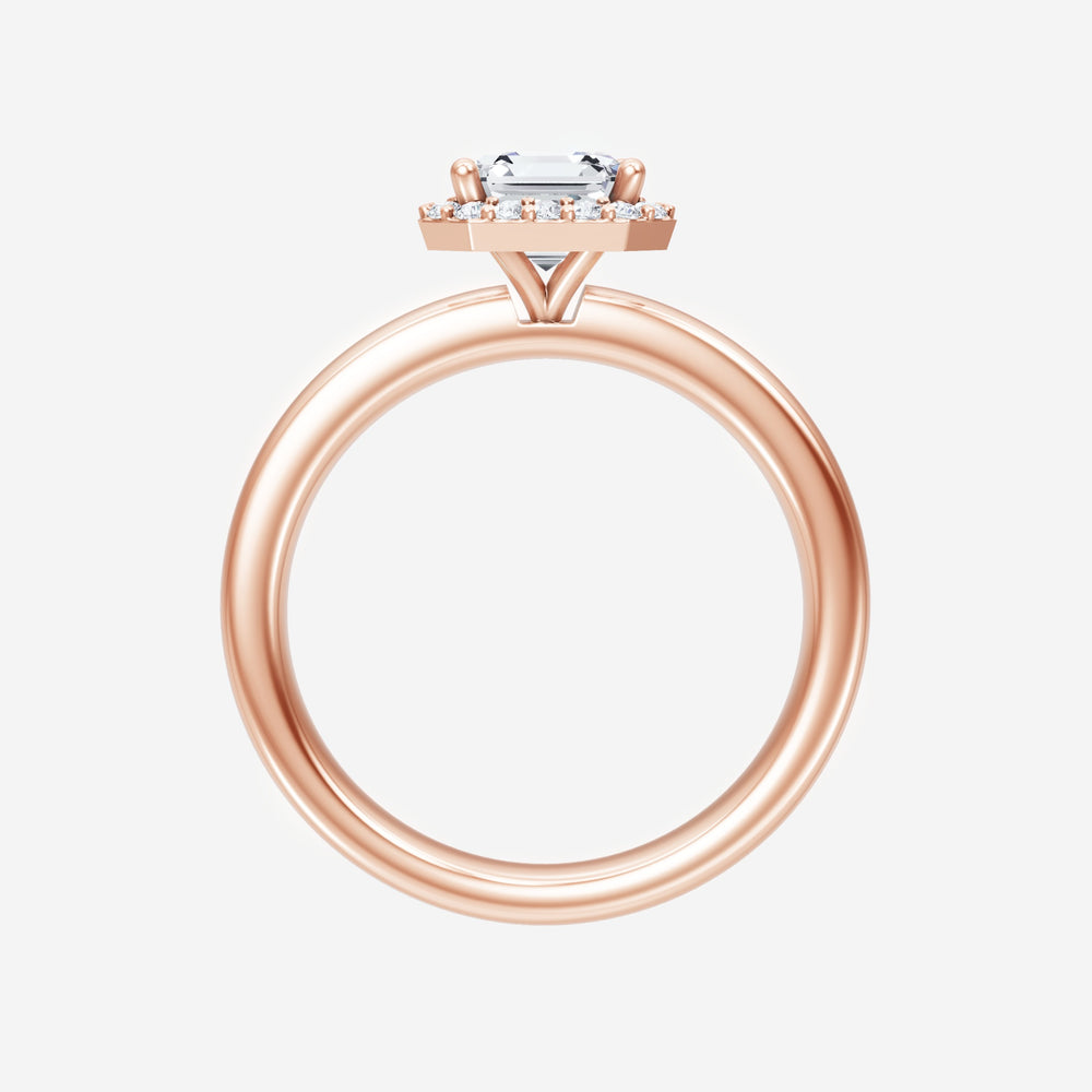 You’ve designed a ring that reflects lasting elegance and grace! Crafted from 14k Rose Gold, this exquisite Asscher lab-grown diamond is the centerpiece of this unique design. This Basic Plain Shank with a Single Halo head showcases the brilliance of the Asscher diamond, creating a timeless look. It's a piece of elegance and beauty, perfect for marking life's most beautiful occasions.