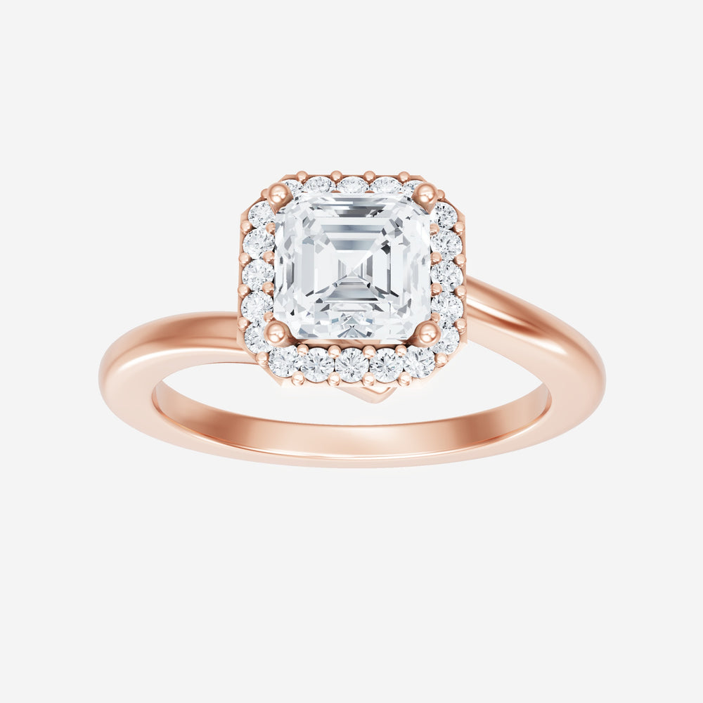 You’ve designed a ring that reflects lasting elegance and grace! Crafted from 14k Rose Gold, this exquisite Asscher lab-grown diamond is the centerpiece of this unique design. This Bypass Shank with a Single Halo head showcases the brilliance of the Asscher diamond, creating a timeless look. A perfect choice to celebrate love, commitment, and everything in between.
