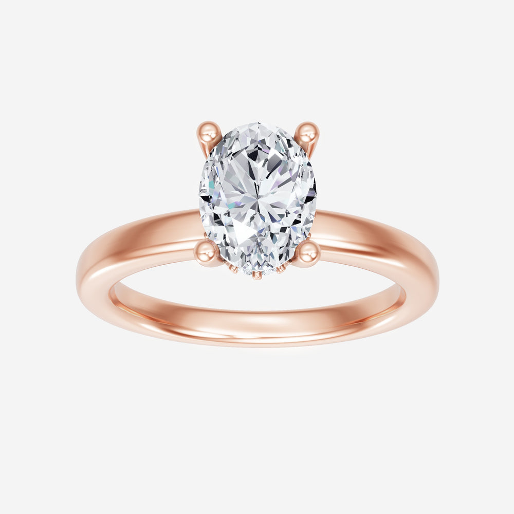 You’ve designed a ring that reflects lasting elegance and grace! Crafted from 14k Rose Gold, this exquisite Oval lab-grown diamond is the centerpiece of this unique design. This Basic Plain Shank with a Hidden Halo head showcases the brilliance of the Oval diamond, creating a timeless look. This elegant piece is the perfect symbol of love, strength, and timeless beauty.