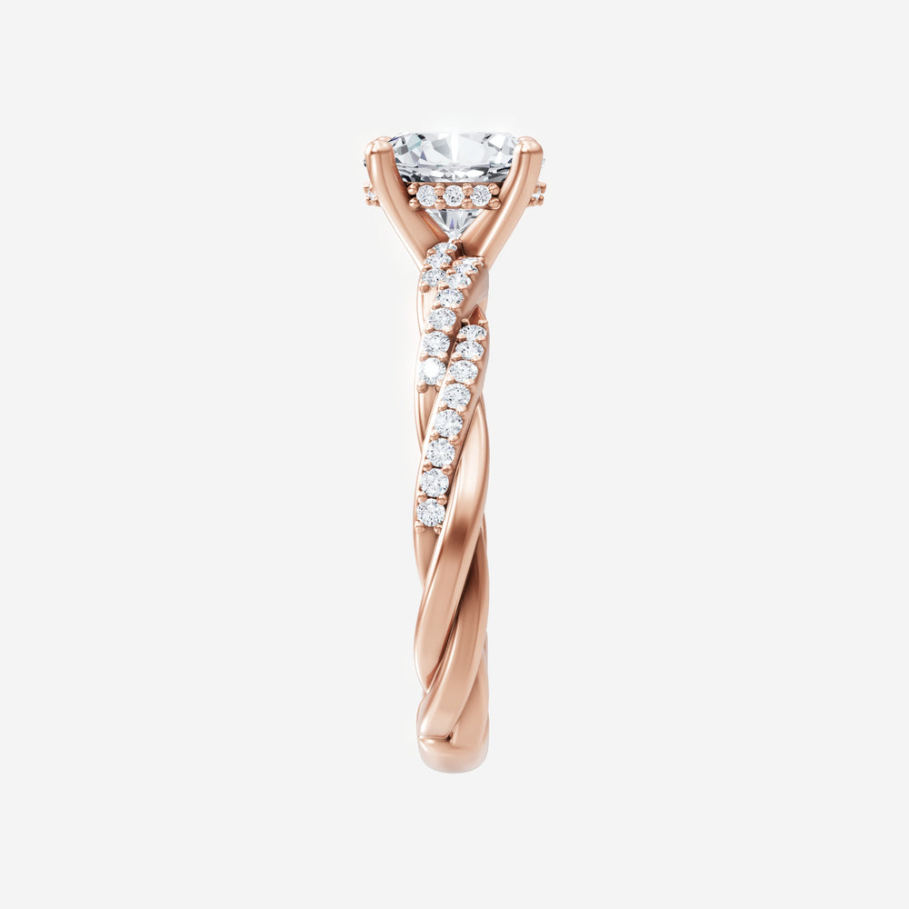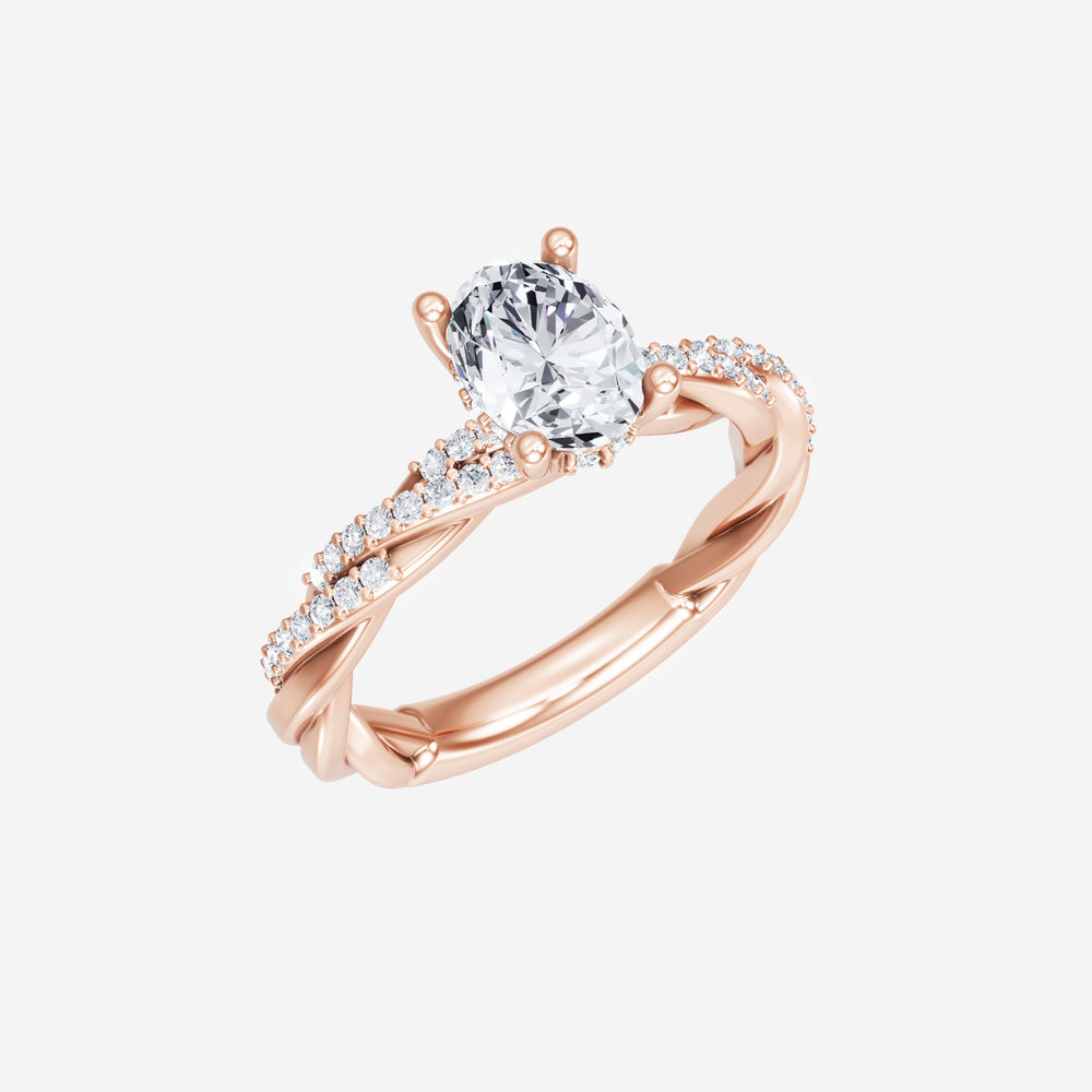 You’ve designed a ring that reflects lasting elegance and grace! Crafted from 14k Rose Gold, this exquisite Oval lab-grown diamond is the centerpiece of this unique design. This Rope Diamond Shank with a Hidden Halo head showcases the brilliance of the Oval diamond, creating a timeless look. It's a piece of elegance and beauty, perfect for marking life's most beautiful occasions.